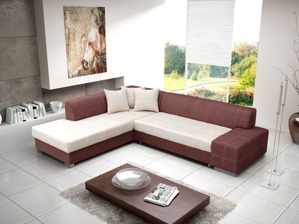 Rohová sedací souprava Cosma (hnědá + béžová) (L)