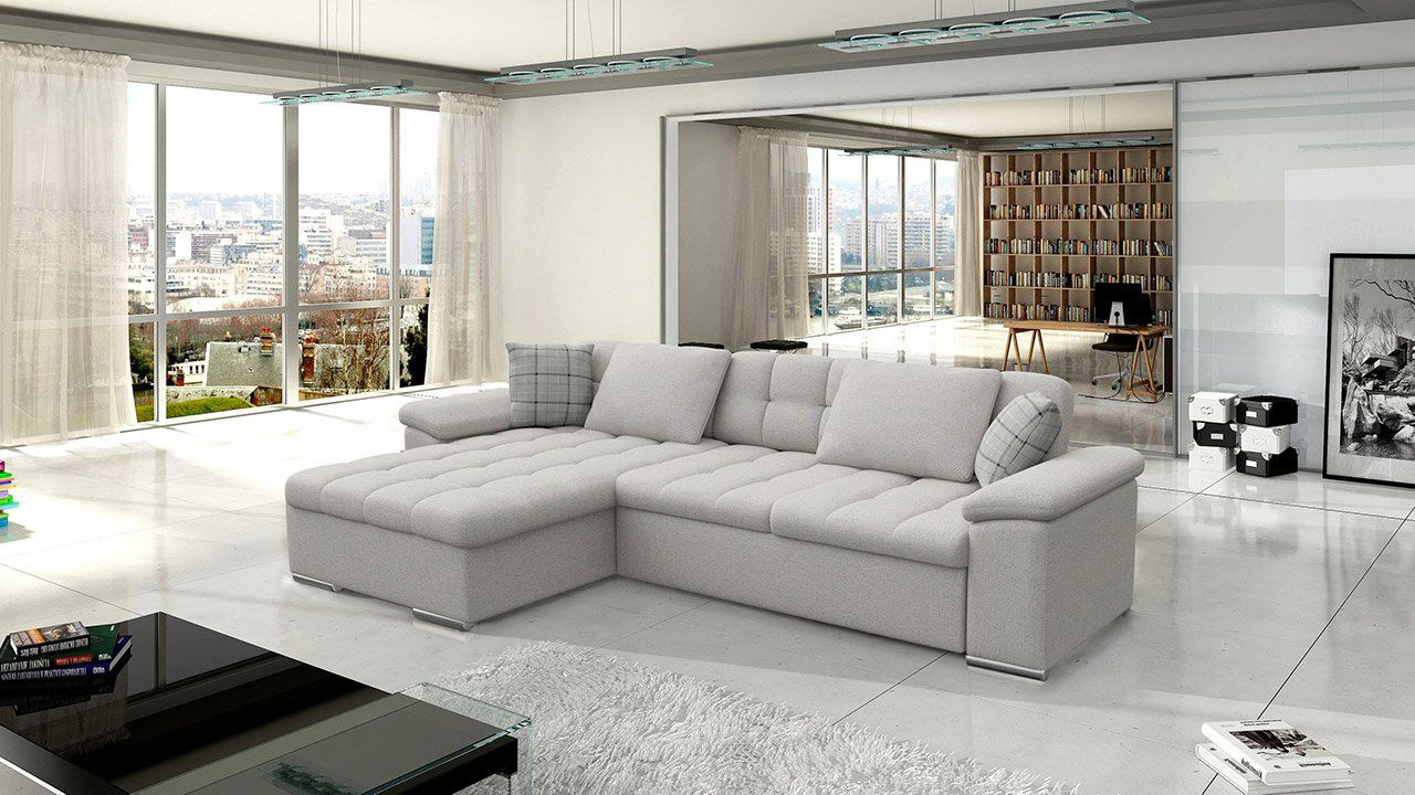 ZobrazitRohová sedací souprava je ideální volbou pro ty, kteří hledají pohodlí a styl. Moderní styl, ve kterém byla vyrobena rozkládací rohová pohovka Dino, se vyznačuje prošívaným sedákem, opěradlem a klasickými barvami. Prvky z ekokůže jí dodávají elegantní vzhled. Moderní rohová pohovka do obývacího pokoje má funkci spaní a nádobu na ložní prádlo. Zadní část rohové pohovky je čalouněna látkou, což z ní činí samostatně stojící kus nábytku. Kromě toho si můžete vybrat stranu rohové pohovky (levou nebo pravou). Rozkládací pohovka do obývacího pokoje má tvar písmene L. Díky vysoce elastické pěně a vlnovým pružinám použitým v sedadle je jeho používání velmi pohodlné. Na to mají vliv i polštáře, které jsou součástí rohové pohovky Dino. Rozměry: délka: 280 cm šířka: 160 cm výška: 76 cm ložná plocha: 227x129 cm rozměry úložného prostoru: délka: 147 cm šířka: 85 cm výška: 23 cm Barva: barevné provedení si vyberte zde Provedení rohu: levé nebo pravé Doplňující informace: na zip v ceně celočalouněná (potažená látkou i na zadní straně) napevno připevněné čalouněné opěrky dřevěný rošt + DTD deska vysokoelastická pěna vlnité pružiny přední nožky: PVC (stříbrné) zadní nožky: PVC (černé) Záruční doba: 24 měsíců