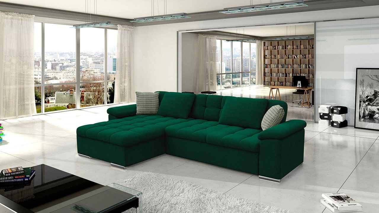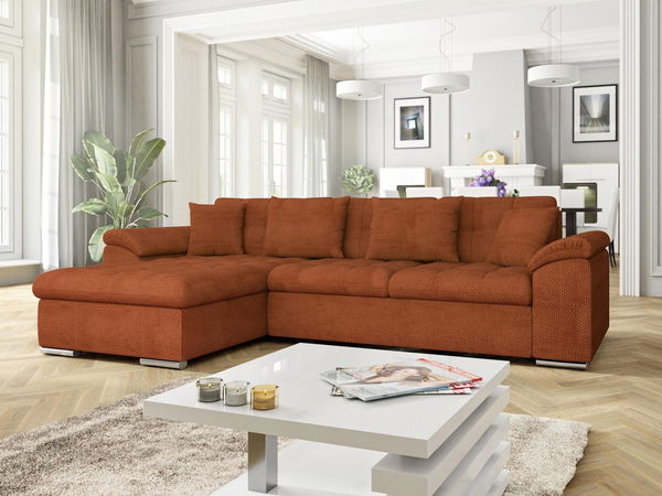ZobrazitRohová sedací souprava je ideální volbou pro ty, kteří hledají pohodlí a styl. Moderní styl, ve kterém byla vyrobena rozkládací rohová pohovka Dino, se vyznačuje prošívaným sedákem, opěradlem a klasickými barvami. Prvky z ekokůže jí dodávají elegantní vzhled. Moderní rohová pohovka do obývacího pokoje má funkci spaní a nádobu na ložní prádlo. Zadní část rohové pohovky je čalouněna látkou, což z ní činí samostatně stojící kus nábytku. Kromě toho si můžete vybrat stranu rohové pohovky (levou nebo pravou). Rozkládací pohovka do obývacího pokoje má tvar písmene L. Díky vysoce elastické pěně a vlnovým pružinám použitým v sedadle je jeho používání velmi pohodlné. Na to mají vliv i polštáře, které jsou součástí rohové pohovky Dino. Rozměry: délka: 280 cm šířka: 160 cm výška: 76 cm ložná plocha: 227x129 cm rozměry úložného prostoru: délka: 147 cm šířka: 85 cm výška: 23 cm Barva: barevné provedení si vyberte zde Provedení rohu: levé nebo pravé Doplňující informace: na zip v ceně celočalouněná (potažená látkou i na zadní straně) napevno připevněné čalouněné opěrky dřevěný rošt + DTD deska vysokoelastická pěna vlnité pružiny přední nožky: PVC (stříbrné) zadní nožky: PVC (černé) Záruční doba: 24 měsíců