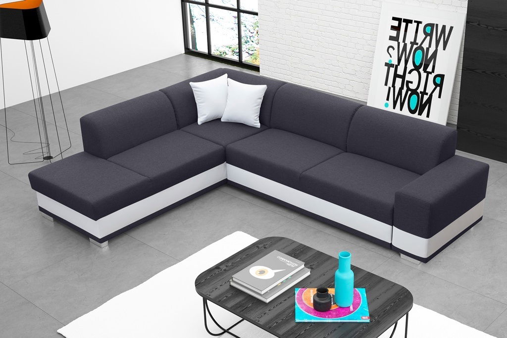 Rohová sedací souprava Darcia (tmavě šedá + bílá) (L)