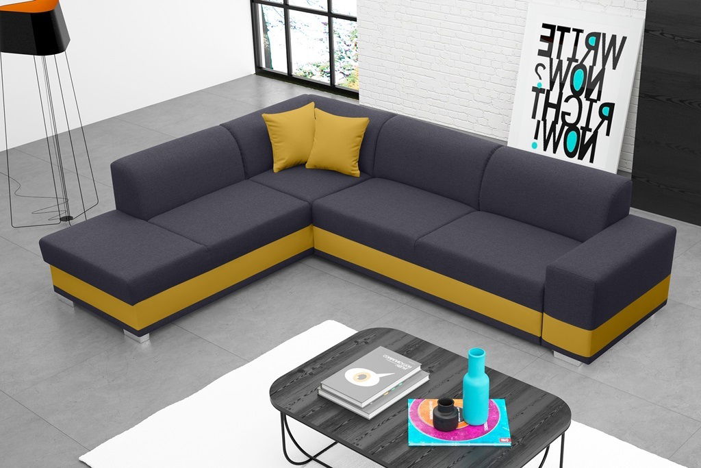 Rohová sedací souprava Darcia (tmavě šedá + žlutá) (L)