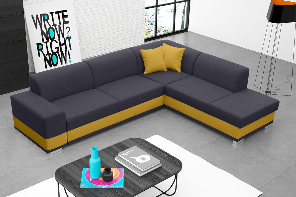 Rohová sedací souprava Darcia (tmavě šedá + žlutá) (P)