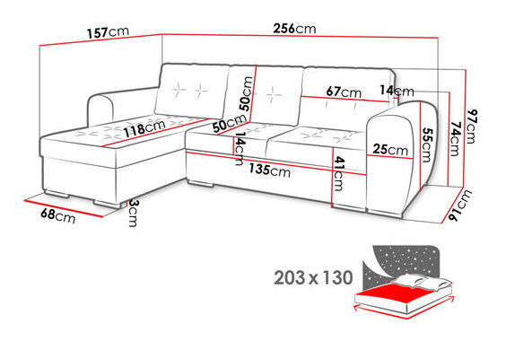 ZobrazitRohová rozkládací pohovka je ideální volbou pro ty, kteří hledají pohodlí a styl. Pohodlné místo k odpočinku i pohodlný prostor pro odpolední spánek poskytuje rohová pohovka Darilko. Její tvar písmene L poskytuje ideální podmínky pro posezení u šálku kávy nebo pro vyložení nohou v pololežící poloze. Při sledování oblíbeného televizního seriálu nebo čtení knihy budou vaše záda obklopena měkkým opěradlem. Jeho pohyblivé polštáře vám umožní nastavit si jejich polohu tak, aby vám vyhovovala. K pohodlí přispívají i područky potažené látkou. Moderní rohová pohovka je vybavena také funkcí na spaní. Pomocí automatu usnadňujícího rozkládání si rychle a jednoduše připravíte místo ke spaní. Vnitřek nábytku ukrývá také úložný prostor. Tato praktická schránka je prostorným úkrytem pro náhradní polštáře a peřinu. Rozměry: délka: 256 cm, šířka: 157 cm, výška: 97 cm, plocha na spaní: 203 x 130 cm, rozměry kontejneru: délka: 132 cm, šířka: 56 cm, výška 25 cm Rohová strana: univerzální (stranu si volí zákazník při montáži Provedení: rám vyrobený + vlnová pružina, opěradlo: T25 pěna + výplň z profilované pěny, rozkládací roh, automatický stroj pro snadné rozkládání, s funkcí spánku, má nádobu na podestýlku, roh typu L, přední nohy - kovové, zadní - plastové, zádová opěrka ve formě pohyblivých polštářů zapínaných na zip, volně 24 měsíců