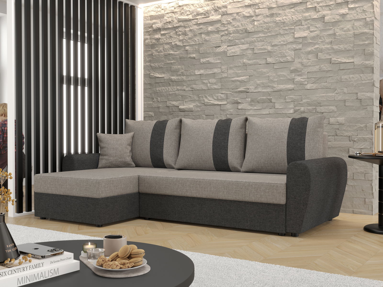 Rohová sedací souprava Daven L (černá + šedá) (L)