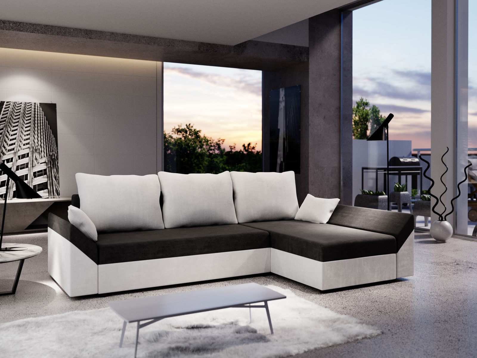 Rohová sedací souprava Destiny L (bílá + černá) (P)