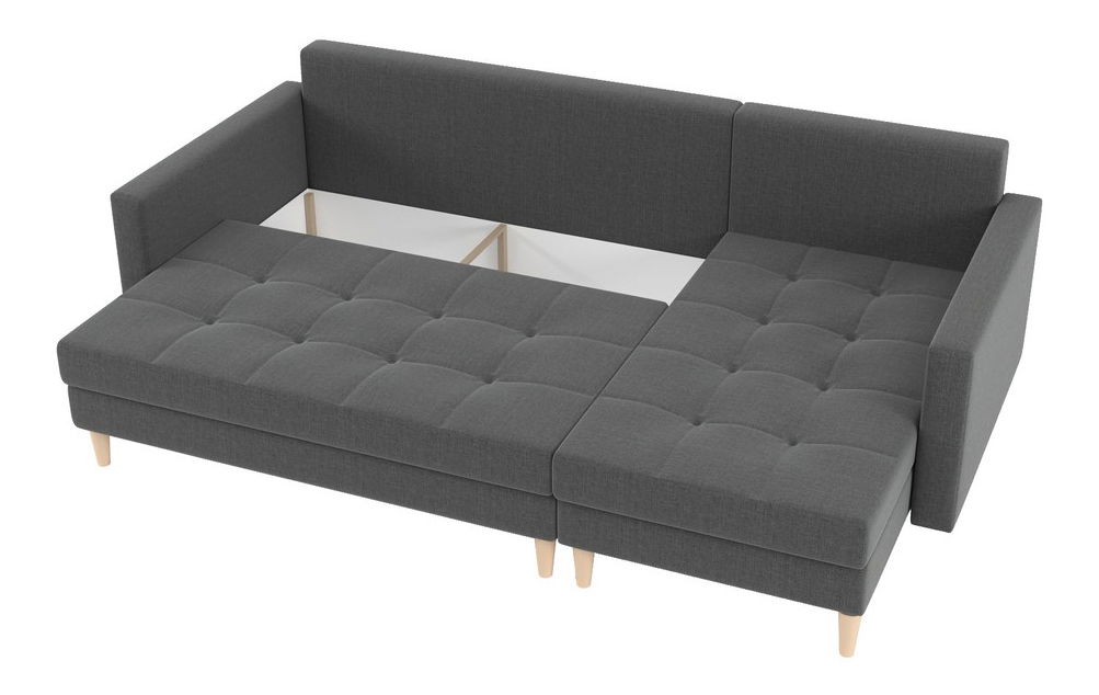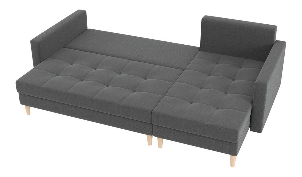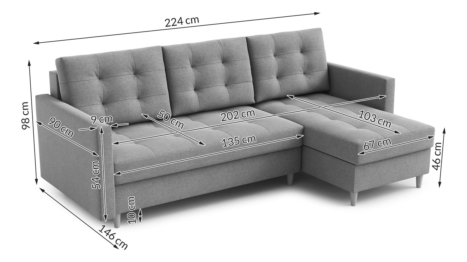 ZobrazitElegance a funkcionalita se setkávají v této pravé rohové sedačce. S robustní konstrukcí ze dřeva a 18 mm nábytkové desky a pohodlnou výplní z bonellových pružin a 3 cm pěny T 30, tato sedačka je ideální pro relaxační večery. Nožičky z naturálního dřeva vysoké 10 cm a opěrky na ruce o rozměru 54x10x90 cm dodávají kusku nábytku výraz. Hloubka sezení je 50 cm (s poduškami) a 80 cm (bez podušek), zatímco plocha na spaní měří 200x140 cm. Úložný prostor a tři příjemné podušky doplňují tento skvost.