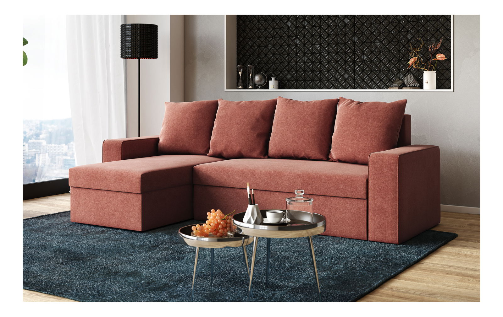 ZobrazitPrestiž a komfort definují tuto levou rohovou sedačku Duff, která okouzluje svojí nadčasovou elegancí. Se konstrukcí ze dřeva a 18 mm nábytkové desky, výplní sedáku z bonellových pružin a 4 cm pěny T 30, tato sedačka zaručuje pohodlí na nejvyšší úrovni. Plastové kluzáky v černé barvě o výšce 2 cm nabízí stabilní a zároveň diskrétní základ. Hloubka sezení je 50 cm s poduškami, 73 cm bez nich, přičemž šířka opěradel je 54x21x90 cm. Praktický úložný prostor v bílé barvě, plocha na spaní 200x140 cm a čtyři stylové podušky umocňují unikátnost a funkcionalitu tohoto kousku nábytku.