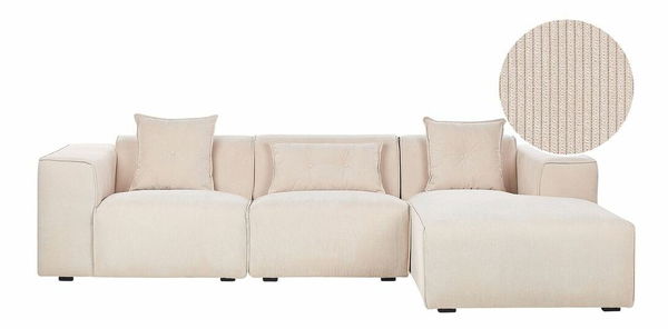 Rohová pohovka s lehátkem, která se okamžitě stane středem pozornosti každého moderního, tradičního nebo minimalisticky zařízeného interiéru. Pevný dřevěný rám a nohy ze syntetického materiálu zaručují dlouhou životnost pohovky, zatímco jedinečné manšestrové čalounění, které je bohatě vyztuženo pěnou, nabízí výborný komfort během sezení. Čisté linie a jednoduchý design doplňují tři polštáře, které dodávají kouzlo celému designu pohovky. Polštáře mají snímatelné potahy, které usnadňují jejich čištění. Lehátko je umístěno na levé straně z pohledu sedící osoby.
