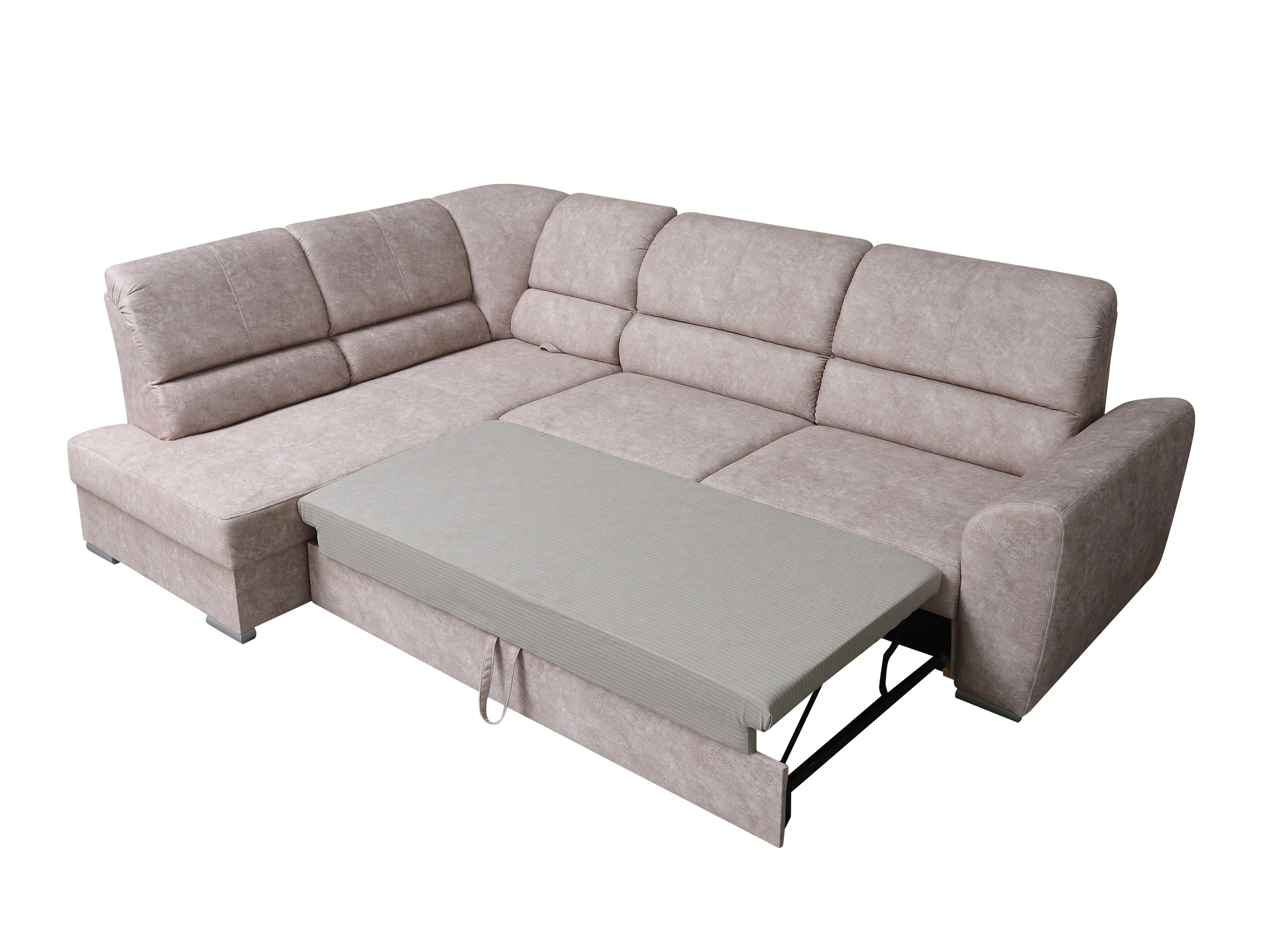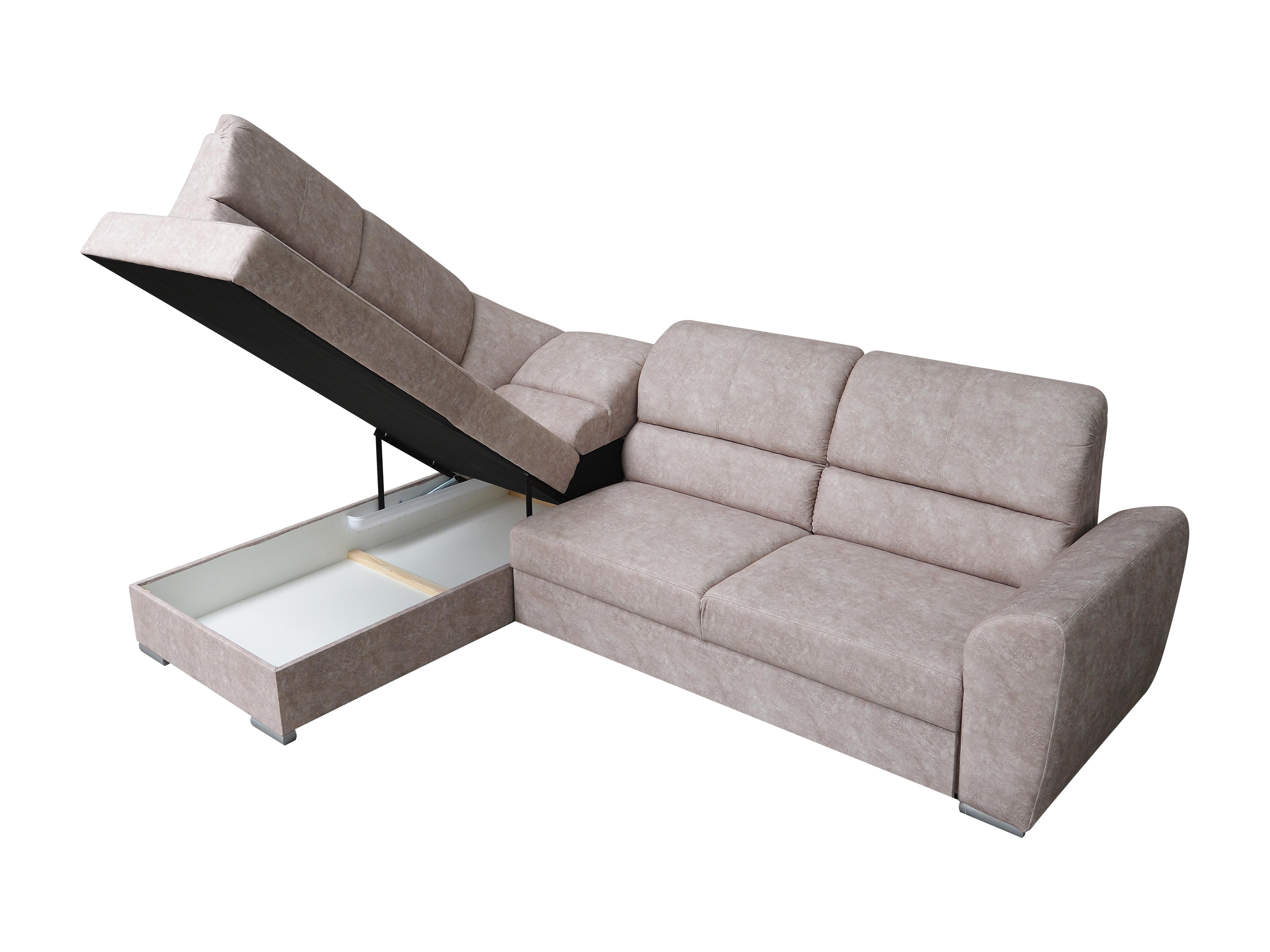 Tato rohová sedací souprava bude nádherným a především praktickým kouskem ve vaším obývacím pokoji. Sedací souprava vyniká svou šířkou, má designově tvarovanou opěradlovou část s prošíváním. Je vyplněna pružinami faliste. Sedací soupravu lze rozložit, čímž získáte prostor pro příležitostné spaní. Úložný prostor sedací soupravy Vám poslouží například pro uložení ložního prádla. Levé provedení sedací soupravy.