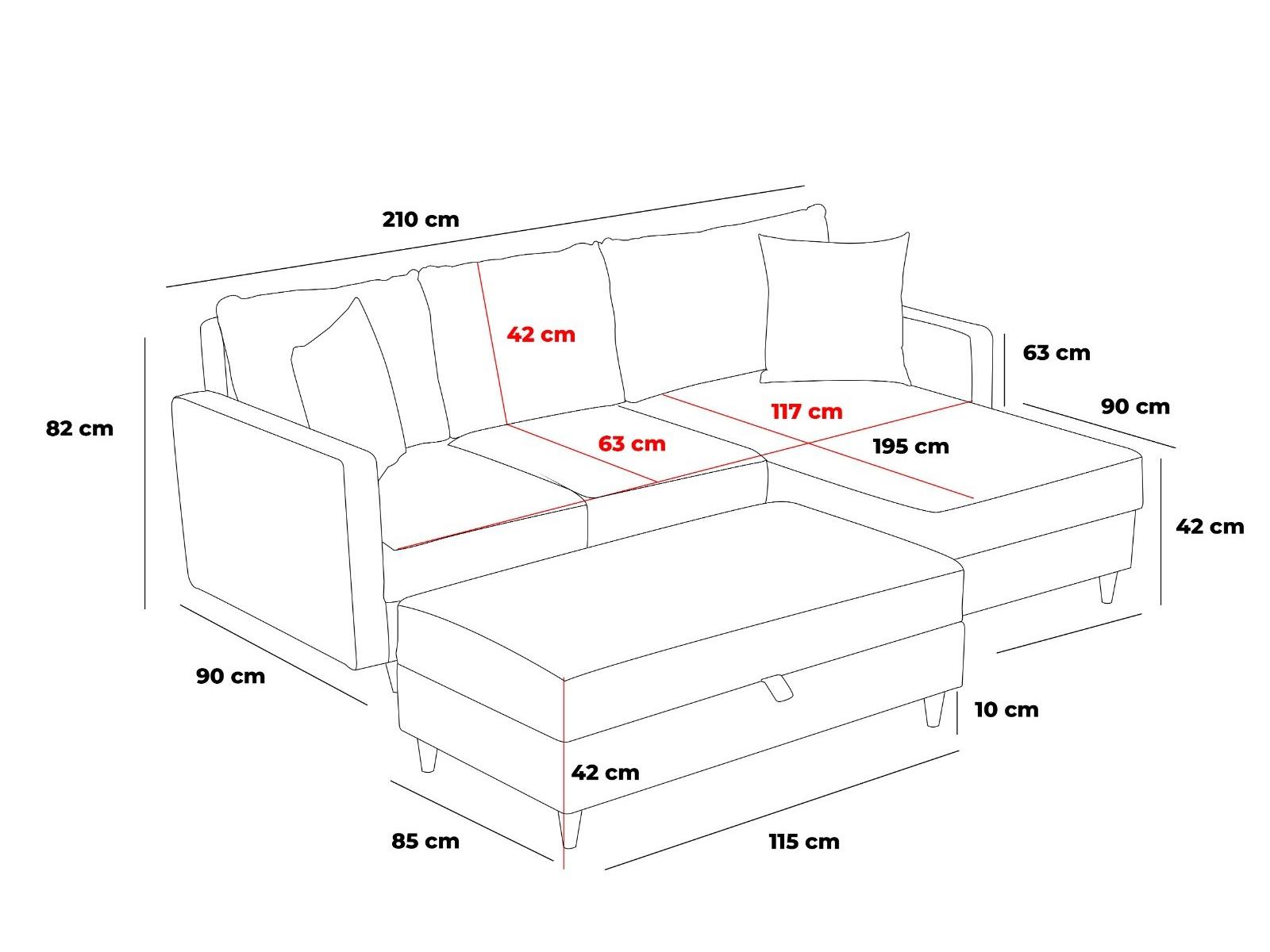 Šířka: 210 cm Výška: 82 cm Hloubka: 195 cm
