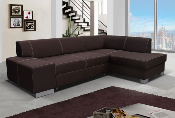 Čisté tvary, minimum ornamentů, kvalitní zpracování, asi tak by se dala charakretizovať luxusní rohová rozkládací sedačka. Do pozornosti dáváme prošívání kontrastující nití. V balení se nacházejí 2 kusy drobných polštářů dodávaných v provedení potahu sedací soupravy.