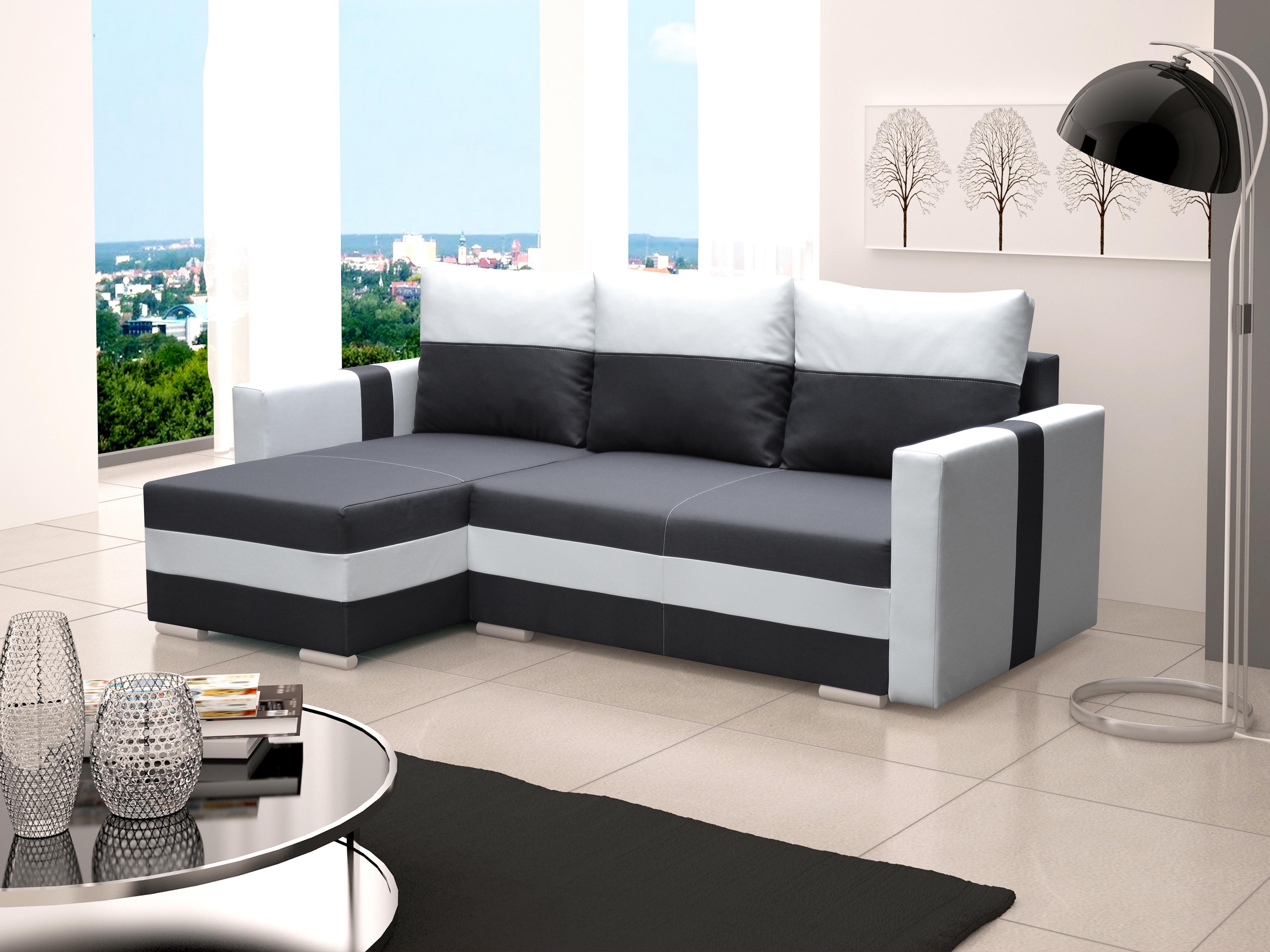 Rohová sedací souprava Farvum (tmavě šedá + bílá) (L)