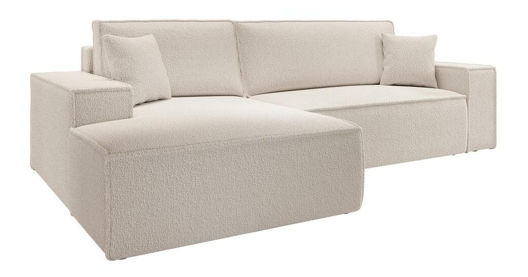 ZobrazitHledáte stylový nábytek do obývacího pokoje? Vyberte si rohovou rozkládací pohovku New New je minimalistického tvaru, který dokonale zapadne do mnoha aranžmá. Výplň sedáku tvoří měkká polyuretanová pěna a vlnité pružiny typu B, které zajišťují mimořádný komfort používání. Nábytek má inteligentní mechanismus rozkládání, který usnadňuje přeměnu rohové sedačky na postel s velkou plochou. New je vybavena i praktickou úložnou přihrádkou, do které můžete uložit další lůžkoviny nebo jiné textilie Podrobnosti o produktu: Nábytek ve tvaru L, levá rohová sedačka, výška opěradla: 46 cm, výška područky: 53 cm, délka otomanu: 123. cm, montáž : samostatně stojící, styl: moderní, skandinávský, nábytek čalouněný látkou Abriamo 3 v béžové barvě, Abriamo je měkká, na dotek příjemná buklová látka. Odolné vůči tření, oděru a odlupování.