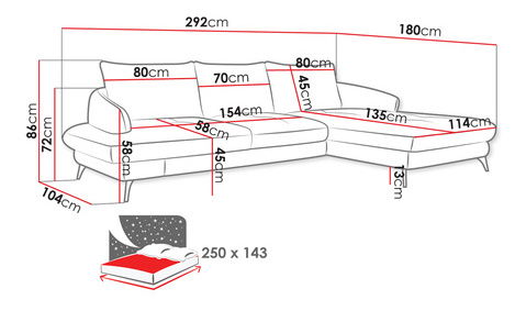 ZobrazitRohová sedací souprava je ideální volbou pro ty, kteří hledají pohodlí a styl. Pokud sníte o rohové pohovce, která bude ve vašem obývacím pokoji nejen krásně vypadat, ale bude splňovat i všechny vaše požadavky na funkčnost, máme pro vás Felline - kus nábytku, který vám poskytne pohodlí i stylový vzhled. Felline je moderní rohová sedací souprava, která kromě pozoruhodného designu nabízí řadu zajímavých řešení. Automatické rozkládání s typem Dolphin vám usnadní každodenní používání, zatímco funkce spaní a kontejner na ložní prádlo vám jistě přijdou vhod, když máte hosty nebo nedostatek místa ve skříni. Rohová obývací sedačka Felline má opěradlo v podobě pohyblivých polštářů, které vám v kombinaci s funkcí rozkladu umožní pohodlně relaxovat v jakékoli poloze. Díky nim si nejen odpočinete, ale získáte i stylový dekorativní prvek, který ozdobí váš obývací pokoj. Felline je dokonalým spojením funkčnosti a designu. Ať už jsou vaše preference jakékoli, tento kus nábytku splní všechna vaše očekávání. Investujte do pohodlí a krásy, vsaďte na rohovou pohovku Felline s funkcí spaní! Rozměry: délka: 292 cm, šířka: 180 cm výška: 72 cm, plocha na spaní: rozměry: 250 x 143 cm, rozměry úložného prostoru: délka: 159 cm, šířka: 92 cm, výška: 12 cm Rohová strana: levá nebo pravá Provedení: konstrukce konstrukce: desky + dřevovláknité desky + MDF desky + HDF desky + překližka + čalounická lepenka, sedák: PUR pěna T28/30 + HR 30/30 + cik-cak pružina typu B, opěradlo: pěna T16/20, rohová pohovka má rozkládací, automatická rozkládací lůžkoviny, kovové a plastové nohy, opěradlo ve formě pohyblivých polštářů, polštáře na zip jsou součástí balení, silikonová výplň, rohová pohovka je volně stojící - zadní část je čalouněna látkou Záruka: 24 měsíců