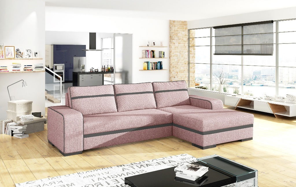 Rohová sedací souprava Fidelia (světle růžová) (P)