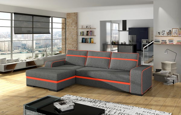 Rohová sedací souprava Fidelia (tmavě šedá + oranžová) (L)