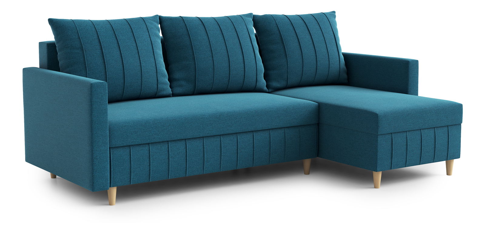 ZobrazitElegantní a příjemná, naše pravá rohová sedačka vám nabízí ideální místo k relaxaci. Solidní konstrukce, vytvořená ze dřeva a nábytkové desky, spojuje síly s pohodlnou výplní z bonellových pružin a pěny T 30, poskytující tak optimální komfort sezení. Naturální dřevěné nožičky (10 cm), subtilní rozměry opěrek na ruce (54x10x90 cm), úložný prostor a rozkládací spánková plocha (200x140 cm) vám přinášejí kombinaci stylu a funkčnosti.