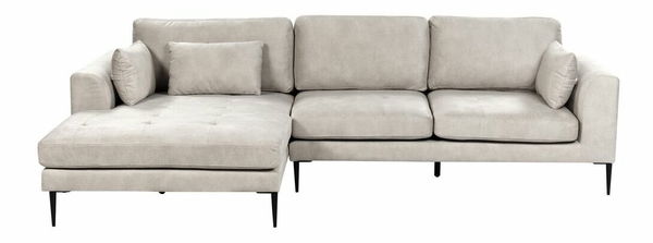 Tato sametová rohová pohovka představuje dokonalou rovnováhu mezi pohodlím a stylem. Lehátko umístěné na pravé straně z pohledu sedící osoby je dokonalým místem k relaxaci a pohodlná čalouněná sedací část nabízí komfortní sezení. Prošívání na sedadle a dodatečné polštáře dodávají pohovce nádech elegance. Minimalistický design pohovky s bočními opěrkami vyzařuje jednoduchost a eleganci, díky čemuž je univerzální volbou do každé domácnosti.