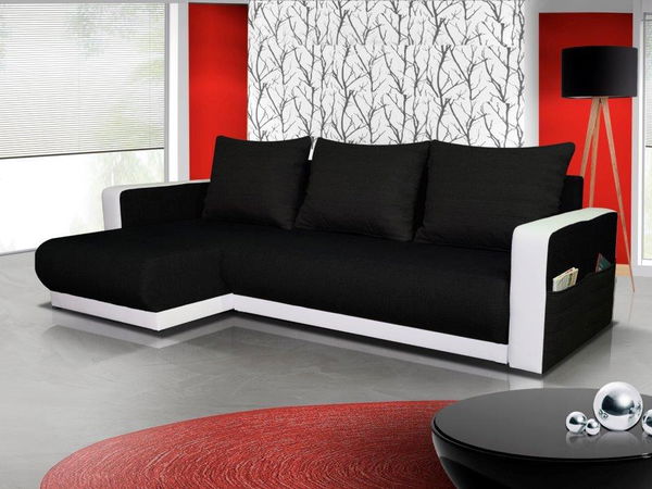 Rohová sedací souprava Fyna (černá + bílá) (L)