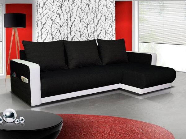 Rohová sedací souprava Fyna (černá + bílá) (P)