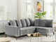 Vytvořte si pohodlný a zároveň stylový obývací prostor s touto komfortní rohovou pohovkou. Je čalouněná odolnou a na dotek jemnou sametovou látkou, která krásně odráží světlo a má jemný lesk. Texturovaná přední část čalounění dodává pohovce elegantní půvab, který zvýrazňují také pevné nohy vyrobené z kovu s povrchovou úpravou se vzhledem dřeva. Hrubá opěradla se postarají o dokonalé pohodlí během sezení a díky zabudovanému zipu lze snadno vyčistit.