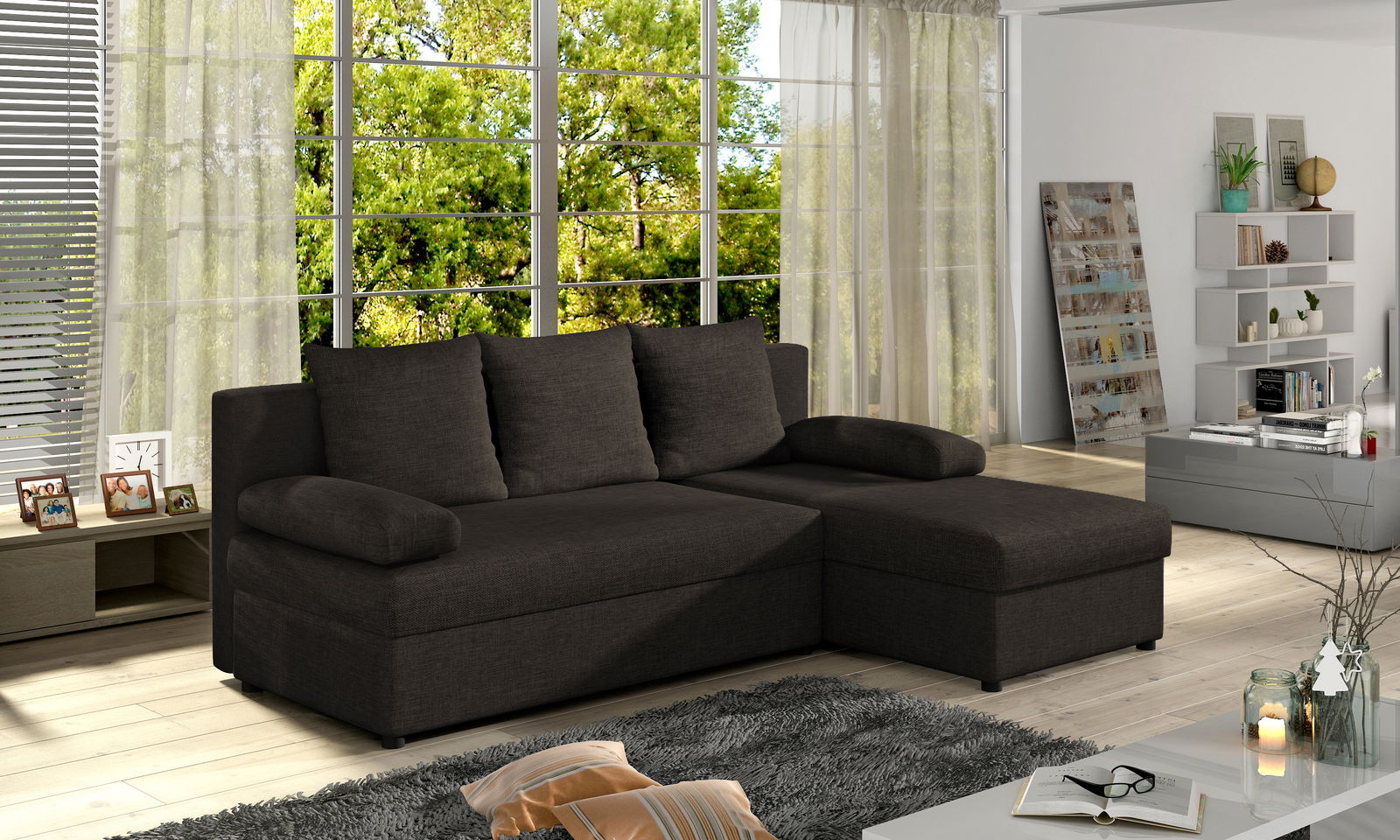 Rohová rozkládací pohovka Gino. Pokud hledáte klasický kus nábytku s nádechem moderního stylu, který bude pohodlný a funkční, rohová pohovka Gino bude tou nejlepší volbou, která zaručuje maximální spokojenost. Rohová pohovka Gino zaujme svou jednoduchostí a díky tvarovanému designu lze snadno integrovat do prostorného obývacího pokoje i malého studiového apartmánu. Rozměry 206x146x90 cm poskytují mnoho prostoru na odpočinek. Velké polštáře jsou ozdobou, které zároveň zvyšují komfort odpočinku. Díky pěně T25 umístěné v sedadlech je roh pohodlný a pružný a zároveň adekvátně podpírá tělo při odpočinku. Díky možnosti výběru barvy čalounění lze rohovou pohovku přizpůsobit celkovému designu interiéru a vytvořit tak souvislý elegantní celek. Pro zvýšení komfortu užívání lze tuto sedačku po rozložení využít i na noční odpočinek. Pohovka zároveň poskytuje i prostorný úložný prostor na lůžkoviny. Díky široké škále barev potahového materiálu lze model Gino snadno přizpůsobit i interiéru zařízenému v skandinávském vzoru.