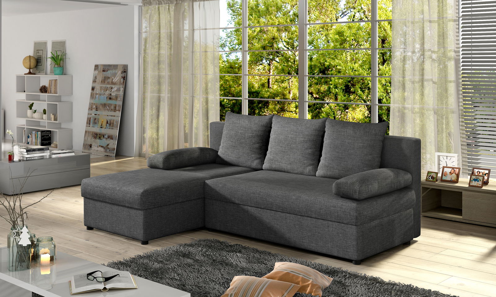 Rohová rozkládací pohovka Gino. Pokud hledáte klasický kus nábytku s nádechem moderního stylu, který bude pohodlný a funkční, rohová pohovka Gino bude tou nejlepší volbou, která zaručuje maximální spokojenost. Rohová pohovka Gino zaujme svou jednoduchostí a díky tvarovanému designu lze snadno integrovat do prostorného obývacího pokoje i malého studiového apartmánu. Rozměry 206x146x90 cm poskytují mnoho prostoru na odpočinek. Velké polštáře jsou ozdobou, které zároveň zvyšují komfort odpočinku. Díky pěně T25 umístěné v sedadlech je roh pohodlný a pružný a zároveň adekvátně podpírá tělo při odpočinku. Díky možnosti výběru barvy čalounění lze rohovou pohovku přizpůsobit celkovému designu interiéru a vytvořit tak souvislý elegantní celek. Pro zvýšení komfortu užívání lze tuto sedačku po rozložení využít i na noční odpočinek. Pohovka zároveň poskytuje i prostorný úložný prostor na lůžkoviny. Díky široké škále barev potahového materiálu lze model Gino snadno přizpůsobit i interiéru zařízenému v skandinávském vzoru.