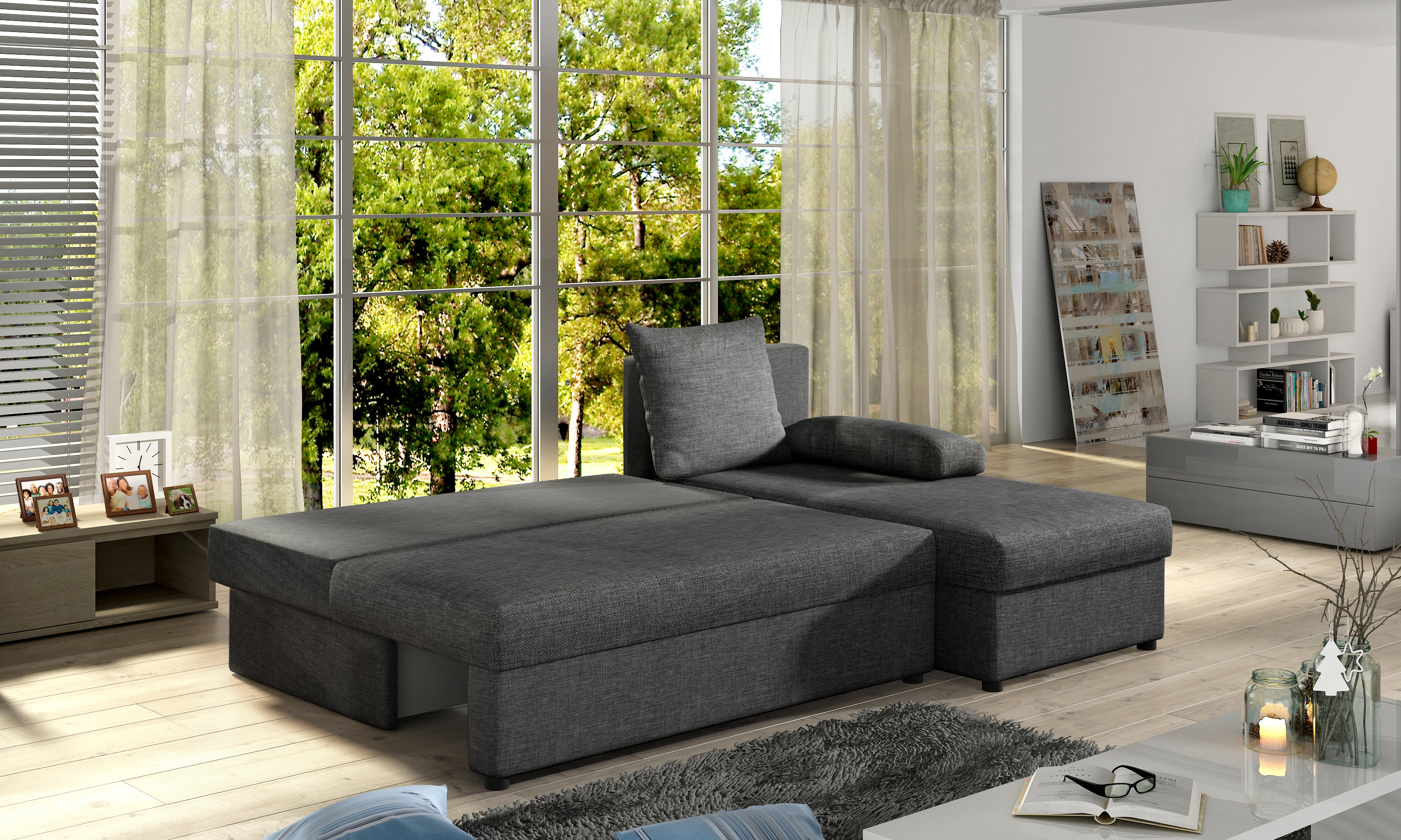 Pohodlná sedačka, aj spí sa na nej super, akurát, že ju treba odtiahnuť od steny aspoň na 10 cm, keď ju treba rozložiť...