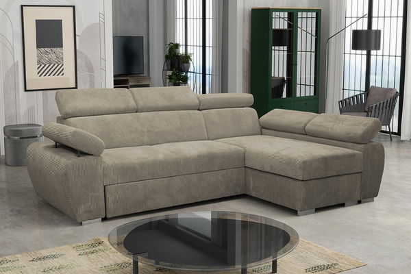 ZobrazitMódní rohová pohovka ve tvaru písmene L doplňuje zařízení obývacího pokoje. Postavená ke zdi nebo do jejího úplného středu podtrhuje elegantní design místnosti. Další předností nábytku je manšestrové čalounění. Díky symetrickým drážkám vnáší rohová pohovka do uspořádání útulnost a teplo. Takto požadovaný efekt umocňují barvy čalounění pečlivě sladěné s nábytkem. Kromě vizuálních kvalit nabízí také zvýšenou funkčnost. Nábytek vybavený nastavitelnými opěrkami hlavy poskytuje pohodlné podmínky pro odpočinek pro celou rodinu. Kromě toho tato moderní rohová pohovka nabízí také funkci spaní a pod jedním ze sedadel se nachází prostorný úložný prostor na lůžkoviny.