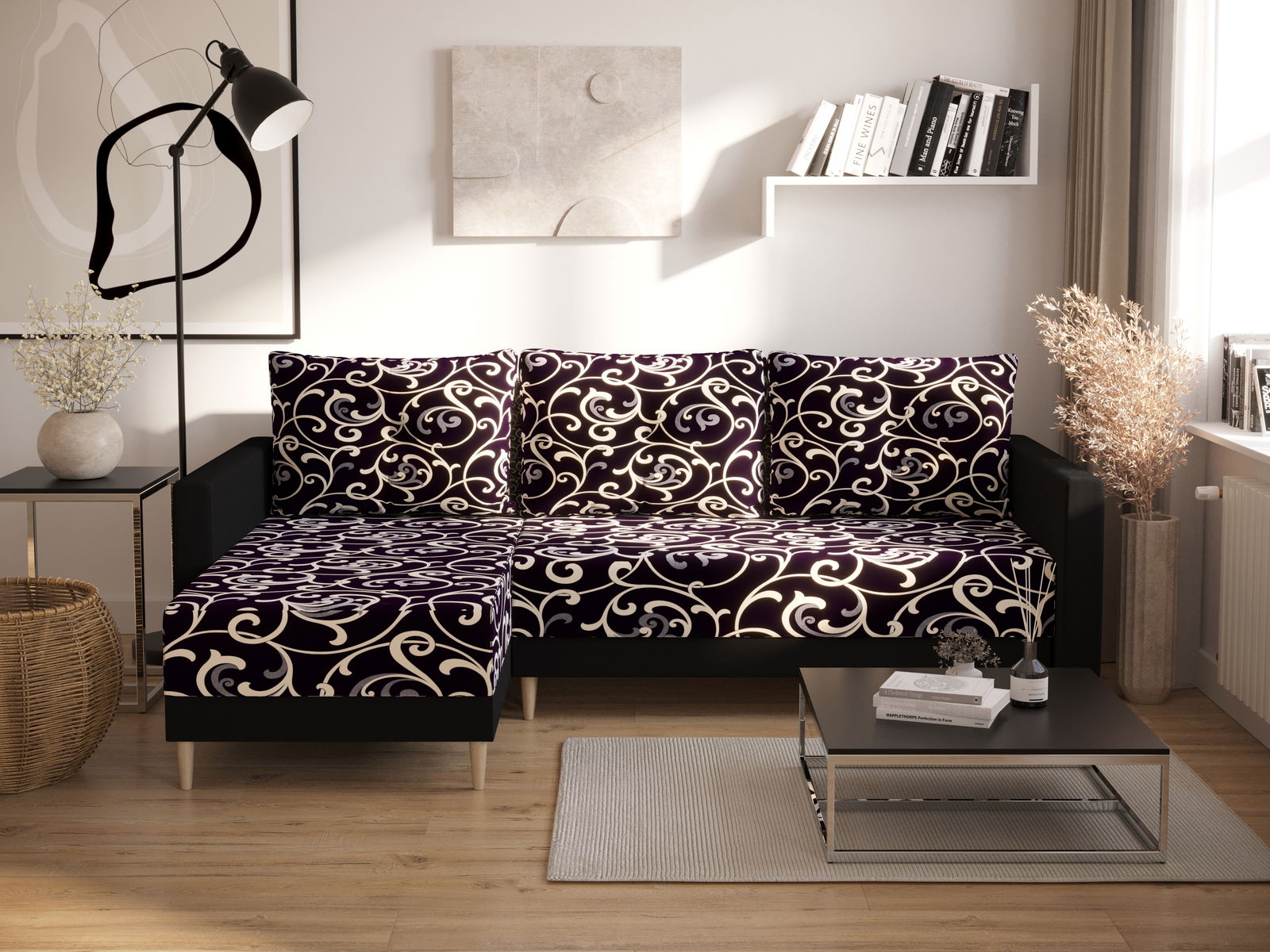 Rohová sedací souprava Glimmer L (černá + vícebarevné) (L)