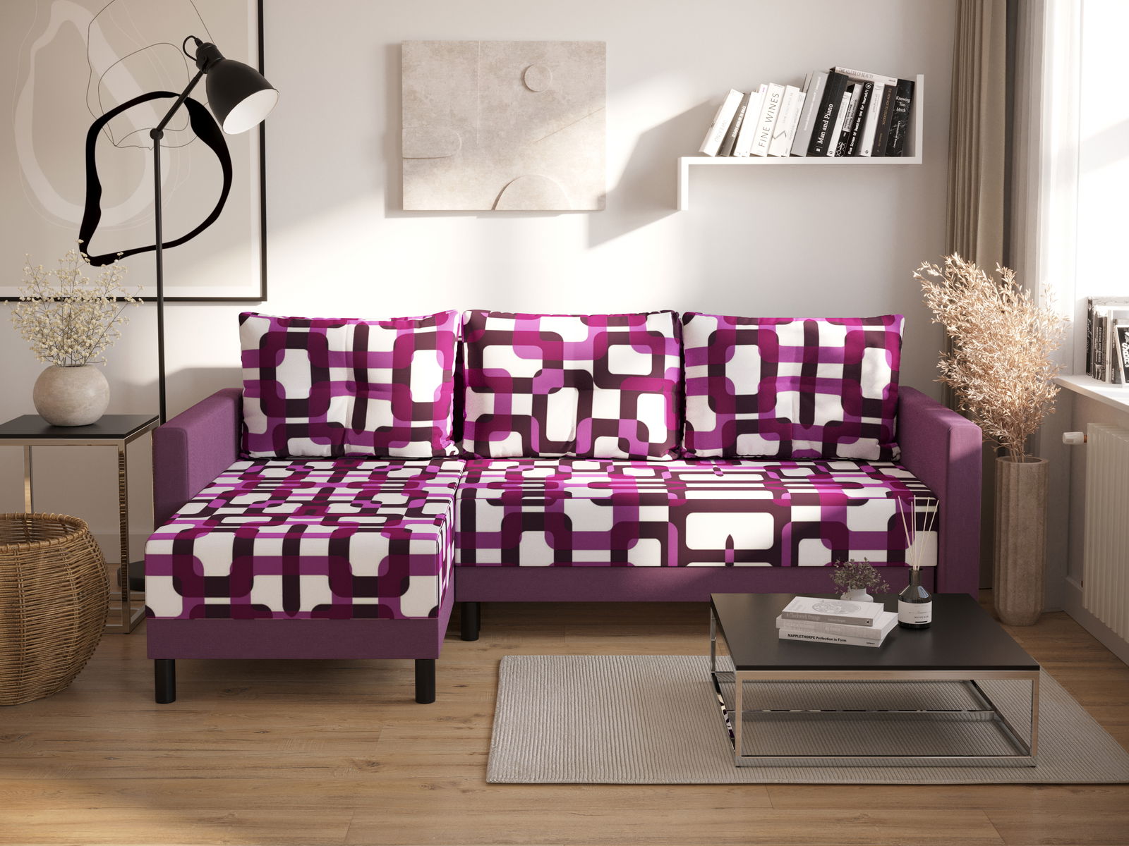 Rohová sedací souprava Glimmer L (černá + vícebarevné) (L)