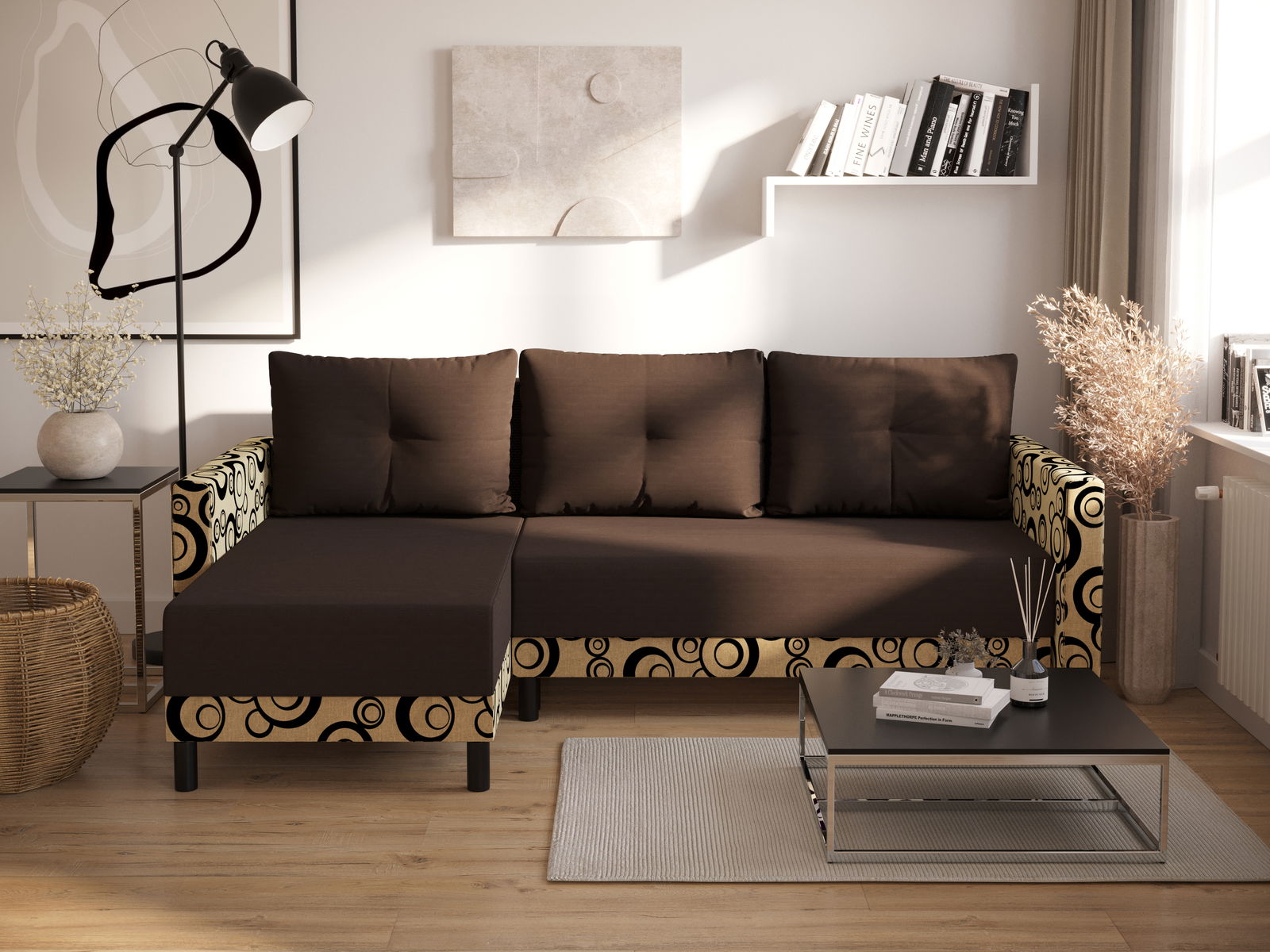 Rohová sedací souprava Glimmer L (hnědá + tmavě hnědá) (L)