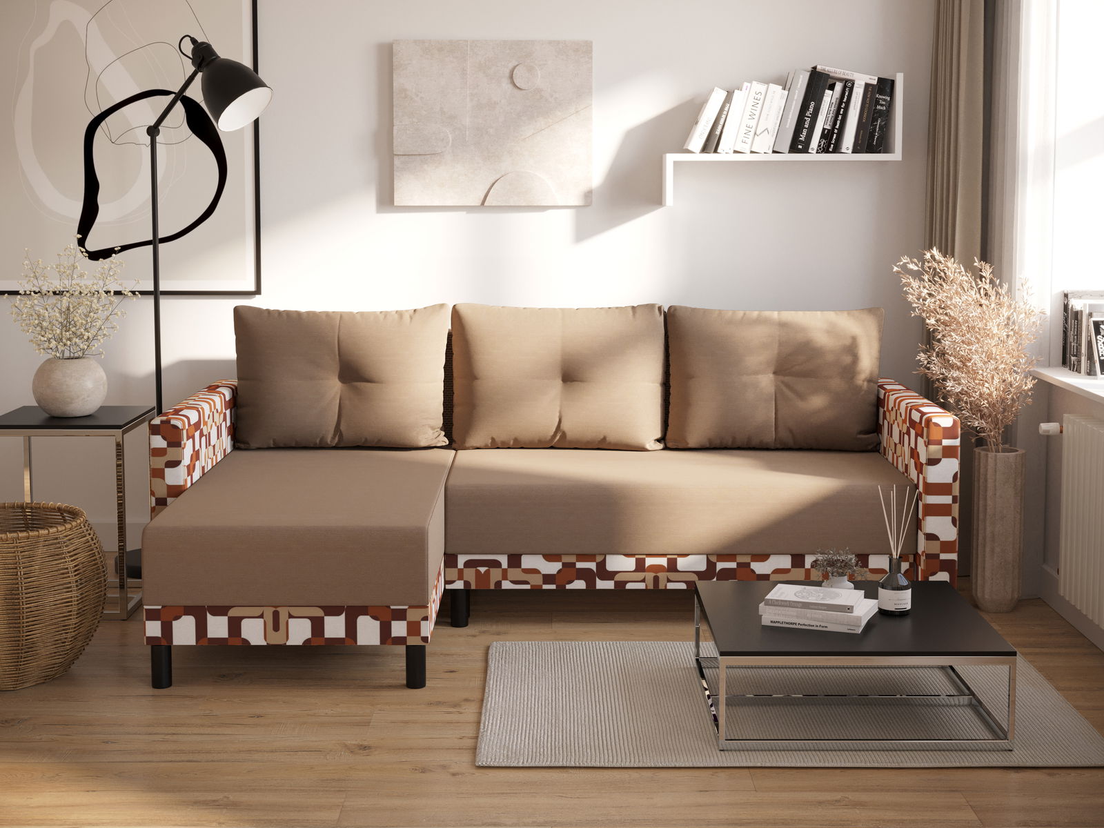 Rohová sedací souprava Glimmer L (pudrová růžová + bílá) (L)