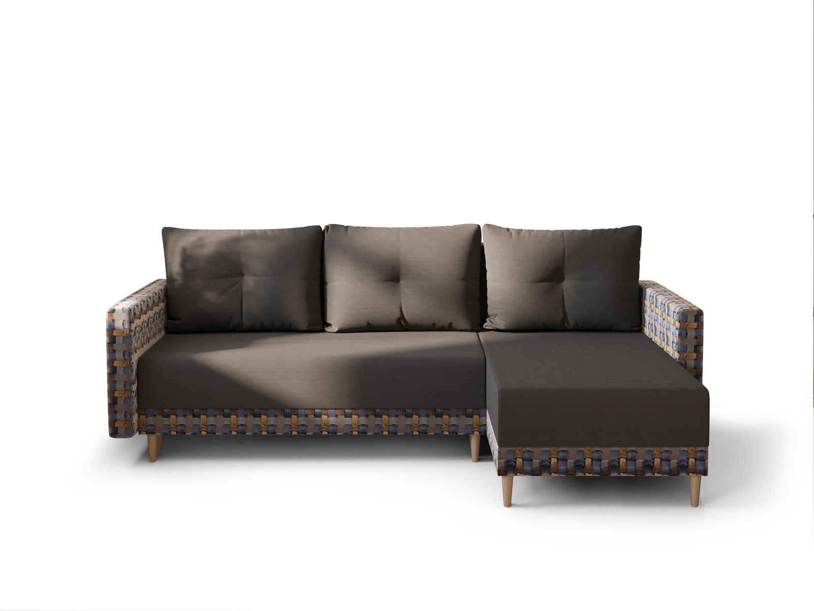 Rohová sedací souprava Glimmer L (tmavě hnědá + vícebarevné) (P)