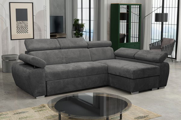 ZobrazitRohová sedačka je ideální volbou pro ty, kdo hledají pohodlí a styl. Módní rohová pohovka Giza Mini ve tvaru písmene L doplňuje zařízení obývacího pokoje. Postavená ke zdi nebo do jejího úplného středu podtrhuje elegantní design místnosti. Další předností nábytku je manšestrové čalounění. Díky symetrickým drážkám vnáší rohová pohovka do uspořádání útulnost a teplo. Takto požadovaný efekt umocňují barvy čalounění pečlivě sladěné s nábytkem. Kromě vizuálních kvalit nabízí Giza Mini také zvýšenou funkčnost. Nábytek vybavený nastavitelnými opěrkami hlavy poskytuje pohodlné podmínky pro odpočinek pro celou rodinu. Kromě toho tato moderní rohová pohovka nabízí také funkci spaní a pod jedním ze sedadel se nachází prostorný úložný prostor na lůžkoviny. Rozměry: délka: 255 cm, šířka: 170 cm, výška: 85 - 98 cm, plocha na spaní: 200 x 130 cm, rozměry kontejneru: délka: 165 cm, šířka: 62 cm, výška: 23 cm Rohová strana: levá nebo pravá Provedení: rám: 6 cm + 16 mm silná MDF deska opěradlo: T30/38 pěna sedátko: T30/38 pěna + vlnová pružina typu B opěrky hlavy: T23/15 pěna rohová sedačka, automatická rozkládací jednotka, typ DELFIN, má funkci spaní, nádoba na lůžkoviny, nábytkové dopěrky čalouněné opěradlo napevno, samostatně stojící rohová pohovka (opěradlo čalouněné látkou) Záruka: 24 měsíců