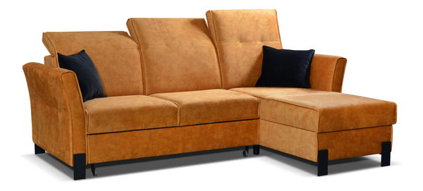 Rohová sedačka, je skvělá volba do obýváku. Výraznější barva sedačky oživí také jednoduchý prostor.