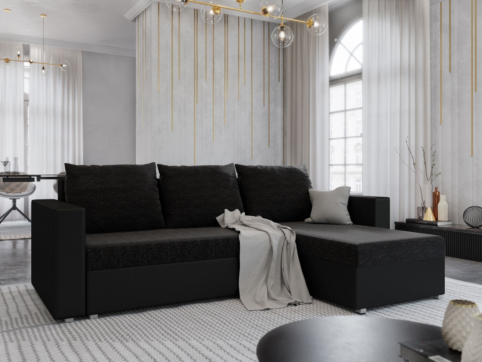 Rohová sedací souprava Hagoo (černá) (P)