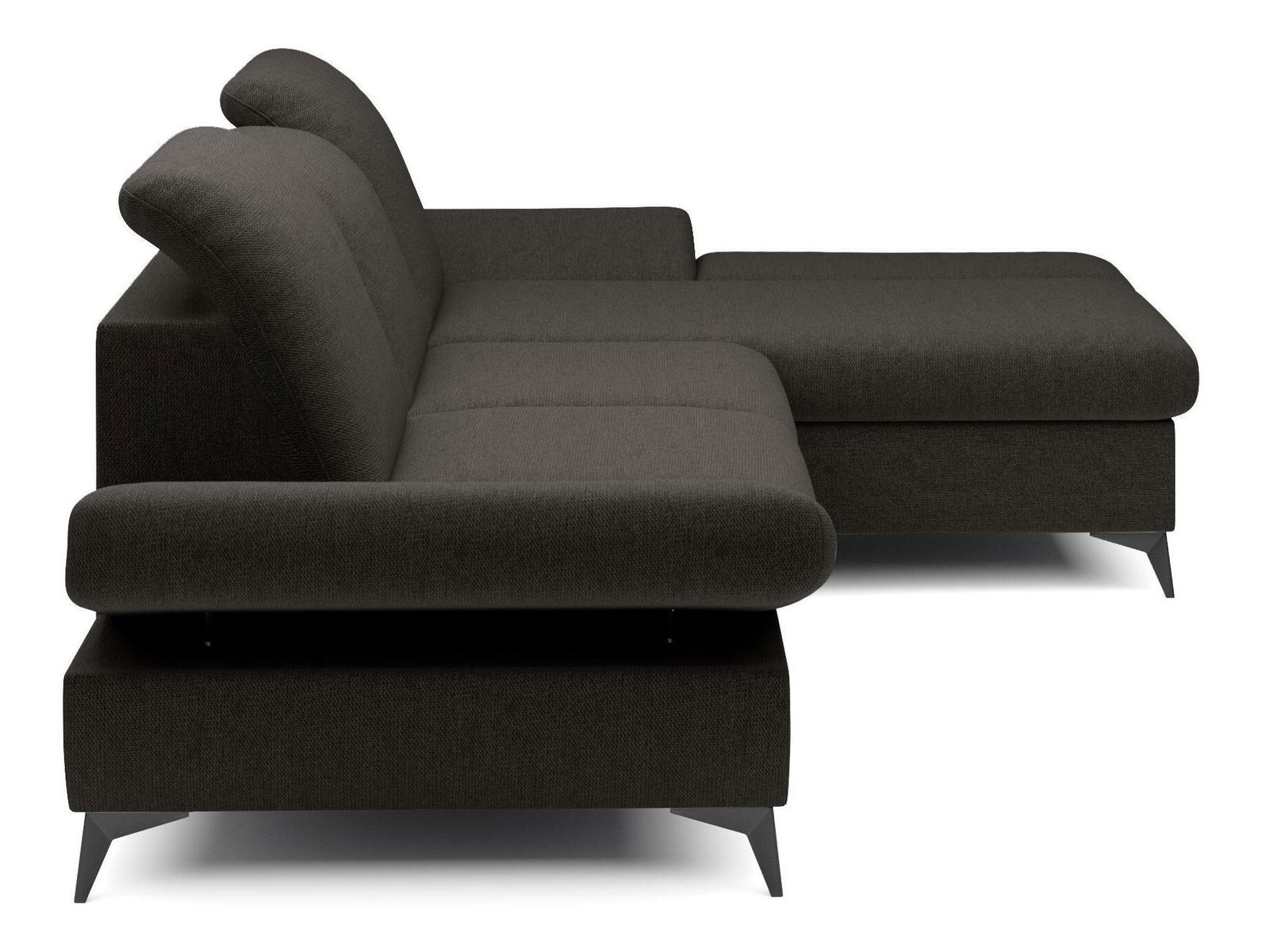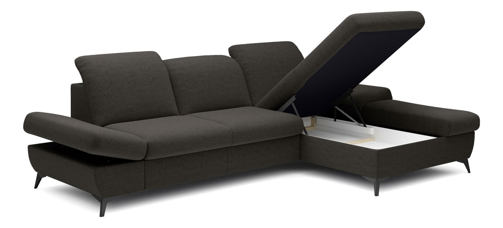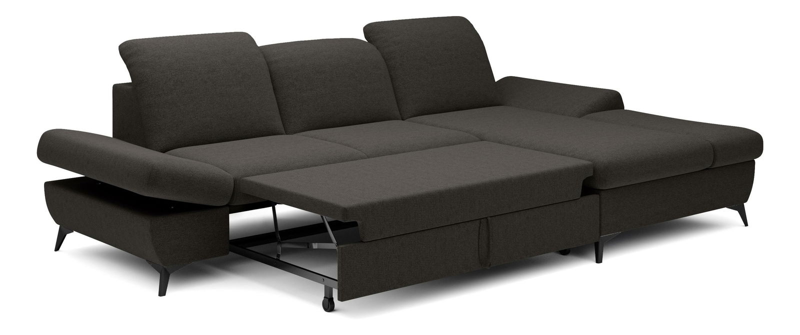 ZobrazitRohová sedačka je vyrobena z kvalitní konstrukce ze dřeva a dřevotřísky, což zaručuje pevnost a trvanlivost. Sedák je z PUR pěny a pružin, které poskytují maximální pohodlí při sezení. Sedačka je rozkládací a nabízí plochu na spaní o rozměrech 128 x 245 cm, ideální pro hosty nebo pro příležitostné přespání. Výška sezení je 42 cm, hloubka sezení 60 cm a výška područky lze nastavit od 42 cm do 57 cm, což umožňuje individuální nastavení podle potřeb uživatele. Sedačka disponuje úložným prostorem, kde můžete uschovat ložní prádlo nebo jiné věci. Hřbet sedačky je potažen stejnou látkou, čímž se dosahuje jednotného a elegantního vzhledu. Nastavitelné opěrky hlavy a područky zvyšují komfort sezení. Nožičky jsou kovové o výšce 10 cm, což dodává sedačce moderní vzhled a stabilitu. Typ rozkládání je vozík, což umožňuje snadné a rychlé rozkládání sedačky.