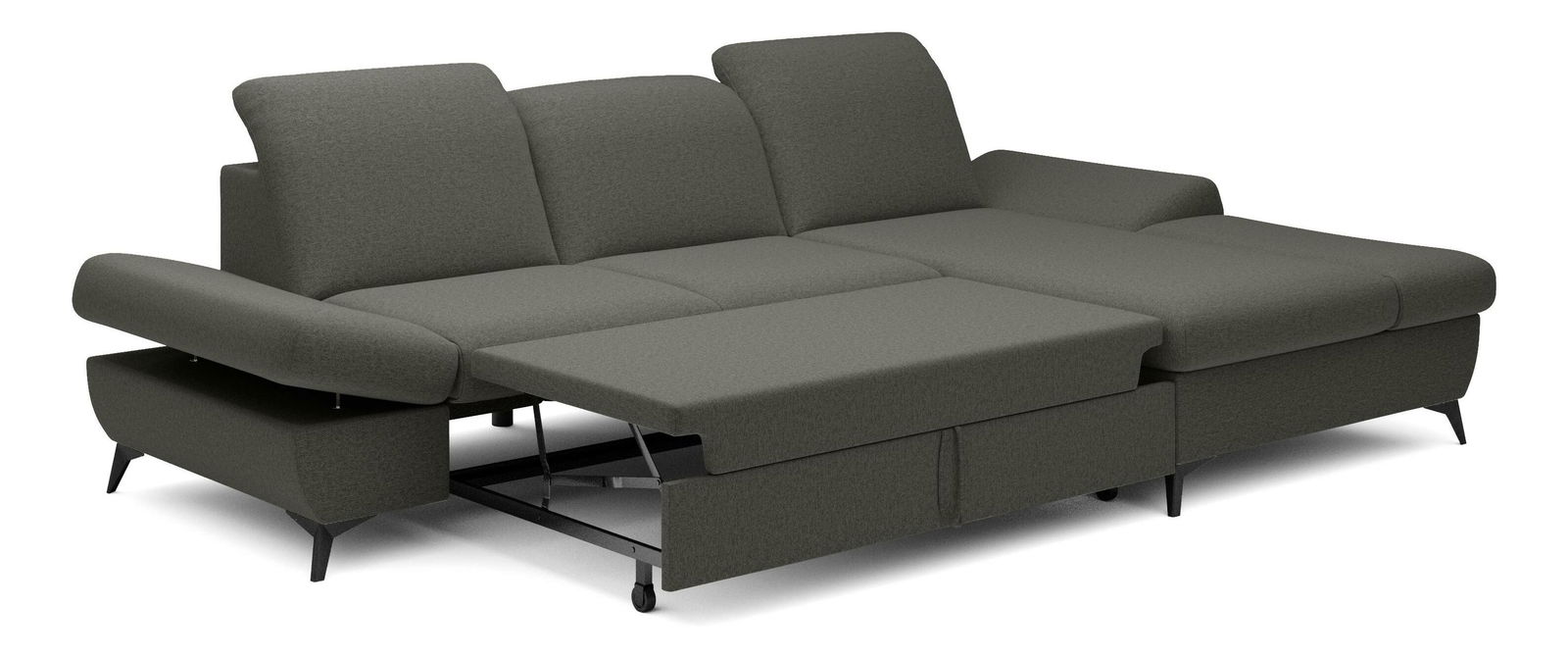 ZobrazitRohová sedačka je vyrobena z kvalitní konstrukce ze dřeva a dřevotřísky, což zaručuje pevnost a trvanlivost. Sedák je z PUR pěny a pružin, které poskytují maximální pohodlí při sezení. Sedačka je rozkládací a nabízí plochu na spaní o rozměrech 128 x 245 cm, ideální pro hosty nebo pro příležitostné přespání. Výška sezení je 42 cm, hloubka sezení 60 cm a výška područky lze nastavit od 42 cm do 57 cm, což umožňuje individuální nastavení podle potřeb uživatele. Sedačka disponuje úložným prostorem, kde můžete uschovat ložní prádlo nebo jiné věci. Hřbet sedačky je potažen stejnou látkou, čímž se dosahuje jednotného a elegantního vzhledu. Nastavitelné opěrky hlavy a područky zvyšují komfort sezení. Nožičky jsou kovové o výšce 10 cm, což dodává sedačce moderní vzhled a stabilitu. Typ rozkládání je vozík, což umožňuje snadné a rychlé rozkládání sedačky.