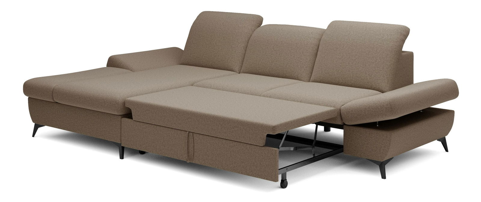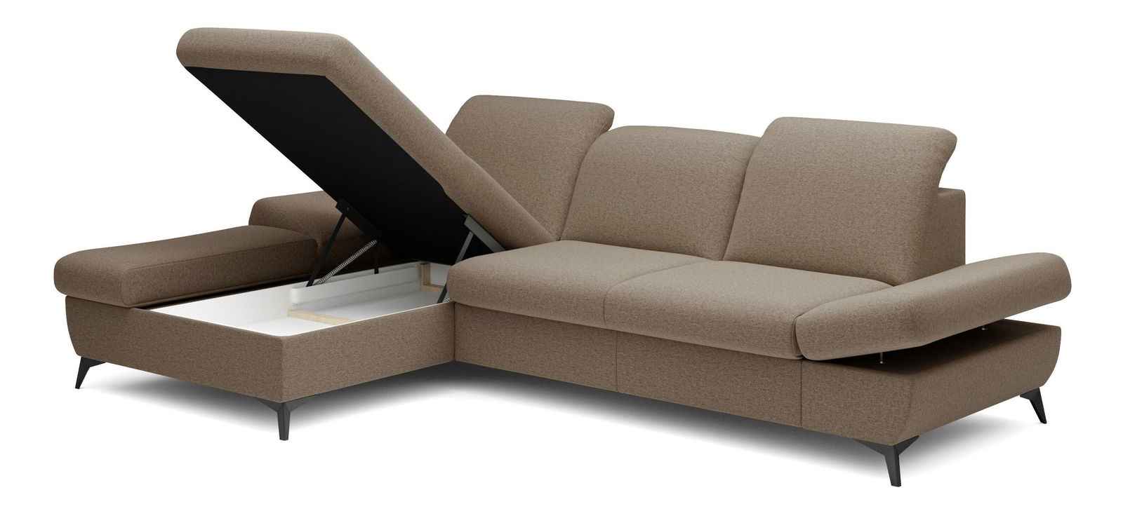 ZobrazitRohová sedačka je vyrobena z kvalitní konstrukce ze dřeva a dřevotřísky, což zaručuje pevnost a trvanlivost. Sedák je z PUR pěny a pružin, které poskytují maximální pohodlí při sezení. Sedačka je rozkládací a nabízí plochu na spaní o rozměrech 128 x 245 cm, ideální pro hosty nebo pro příležitostné přespání. Výška sezení je 42 cm, hloubka sezení 60 cm a výška područky lze nastavit od 42 cm do 57 cm, což umožňuje individuální nastavení podle potřeb uživatele. Sedačka disponuje úložným prostorem, kde můžete uschovat ložní prádlo nebo jiné věci. Hřbet sedačky je potažen stejnou látkou, čímž se dosahuje jednotného a elegantního vzhledu. Nastavitelné opěrky hlavy a područky zvyšují komfort sezení. Nožičky jsou kovové o výšce 10 cm, což dodává sedačce moderní vzhled a stabilitu. Typ rozkládání je vozík, což umožňuje snadné a rychlé rozkládání sedačky.
