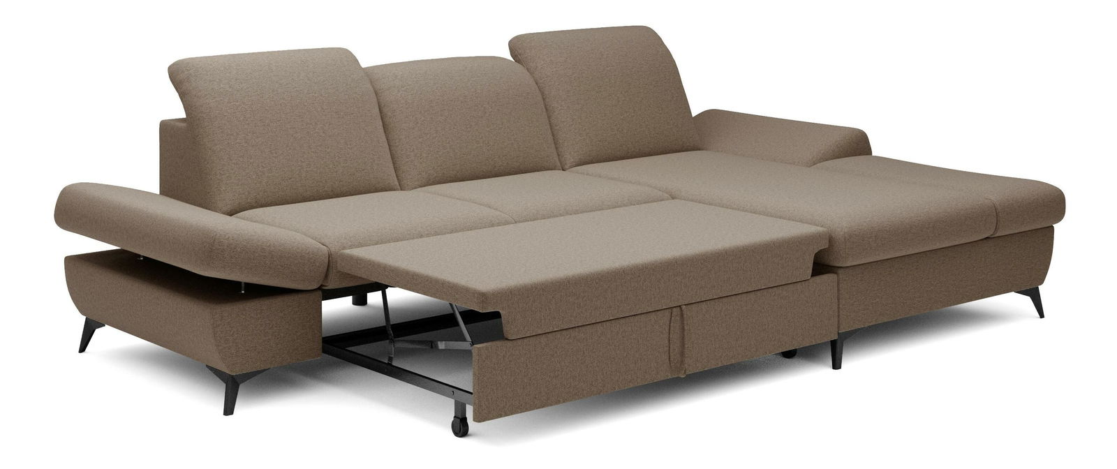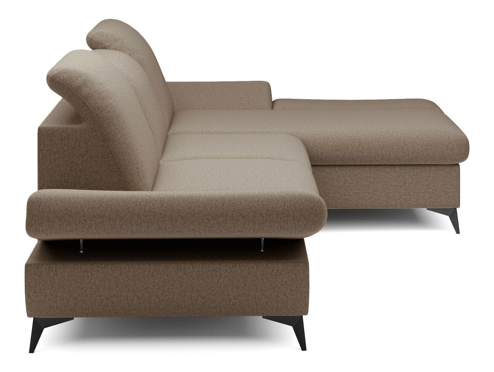 ZobrazitRohová sedačka je vyrobena z kvalitní konstrukce ze dřeva a dřevotřísky, což zaručuje pevnost a trvanlivost. Sedák je z PUR pěny a pružin, které poskytují maximální pohodlí při sezení. Sedačka je rozkládací a nabízí plochu na spaní o rozměrech 128 x 245 cm, ideální pro hosty nebo pro příležitostné přespání. Výška sezení je 42 cm, hloubka sezení 60 cm a výška područky lze nastavit od 42 cm do 57 cm, což umožňuje individuální nastavení podle potřeb uživatele. Sedačka disponuje úložným prostorem, kde můžete uschovat ložní prádlo nebo jiné věci. Hřbet sedačky je potažen stejnou látkou, čímž se dosahuje jednotného a elegantního vzhledu. Nastavitelné opěrky hlavy a područky zvyšují komfort sezení. Nožičky jsou kovové o výšce 10 cm, což dodává sedačce moderní vzhled a stabilitu. Typ rozkládání je vozík, což umožňuje snadné a rychlé rozkládání sedačky.