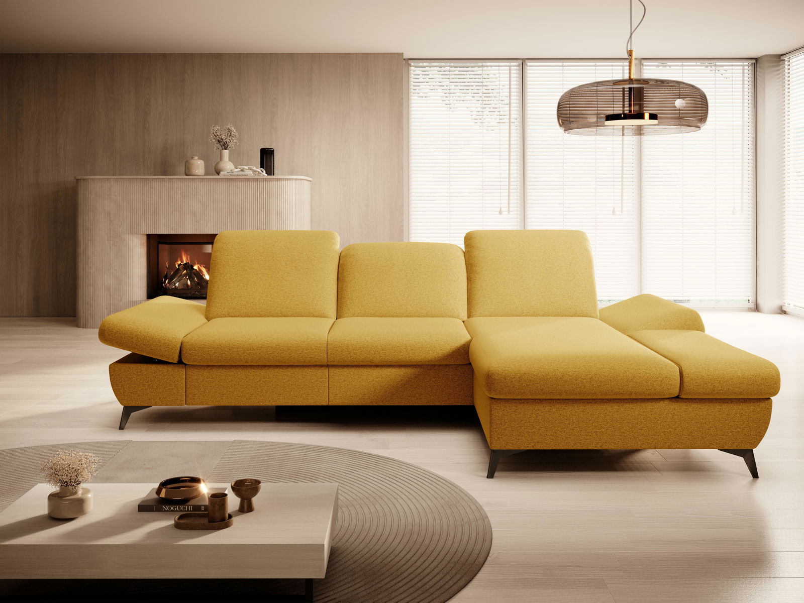 Rohová sedací souprava Harpie (hořčicová) (P)
