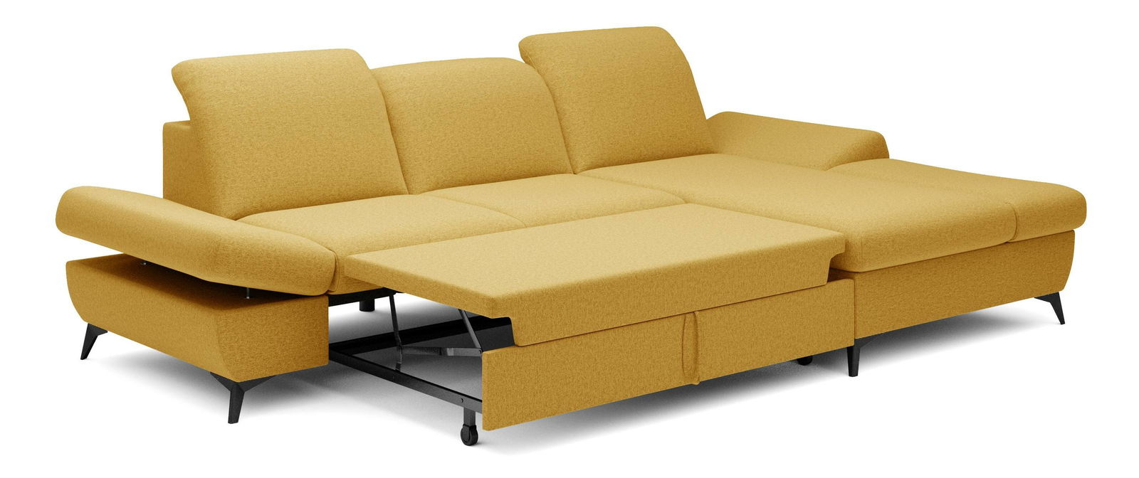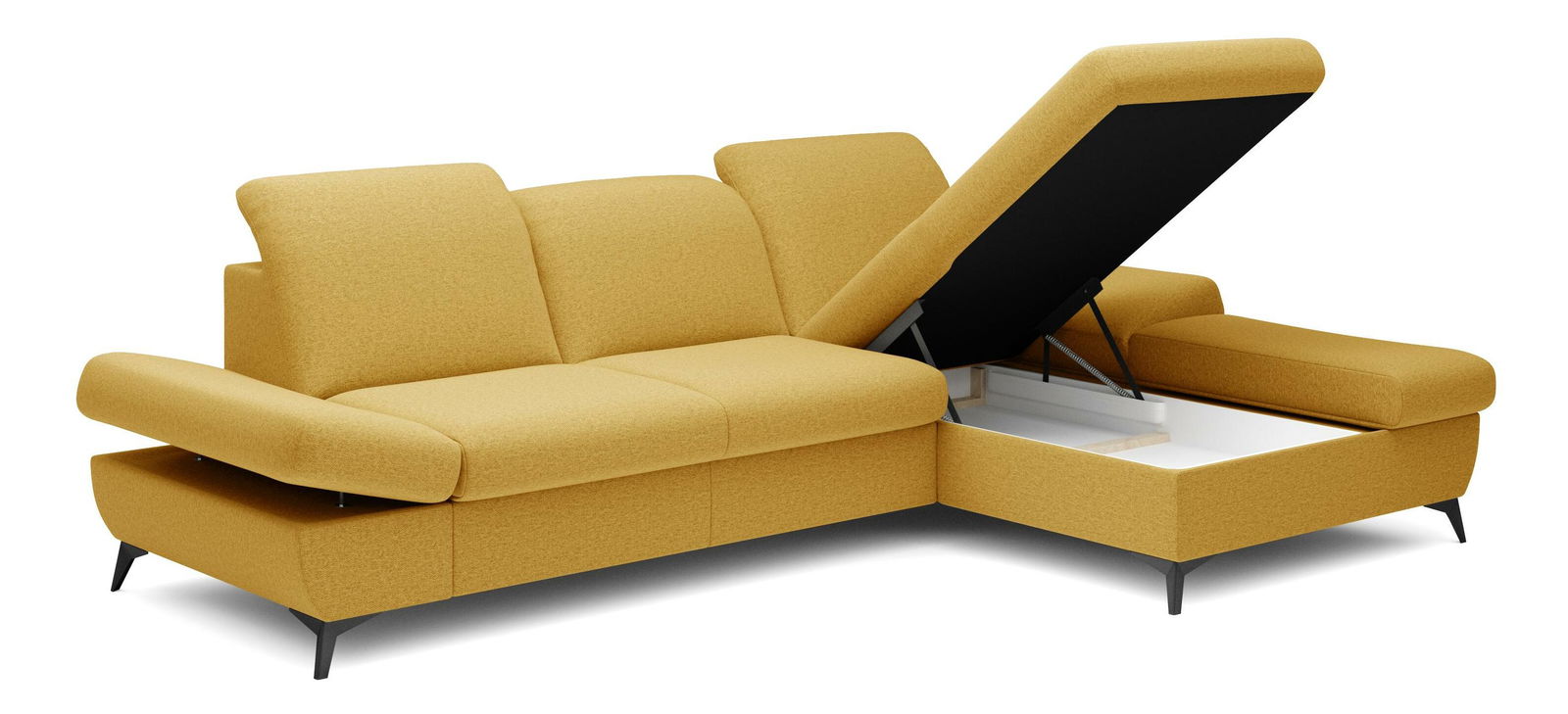 ZobrazitRohová sedačka je vyrobena z kvalitní konstrukce ze dřeva a dřevotřísky, což zaručuje pevnost a trvanlivost. Sedák je z PUR pěny a pružin, které poskytují maximální pohodlí při sezení. Sedačka je rozkládací a nabízí plochu na spaní o rozměrech 128 x 245 cm, ideální pro hosty nebo pro příležitostné přespání. Výška sezení je 42 cm, hloubka sezení 60 cm a výška područky lze nastavit od 42 cm do 57 cm, což umožňuje individuální nastavení podle potřeb uživatele. Sedačka disponuje úložným prostorem, kde můžete uschovat ložní prádlo nebo jiné věci. Hřbet sedačky je potažen stejnou látkou, čímž se dosahuje jednotného a elegantního vzhledu. Nastavitelné opěrky hlavy a područky zvyšují komfort sezení. Nožičky jsou kovové o výšce 10 cm, což dodává sedačce moderní vzhled a stabilitu. Typ rozkládání je vozík, což umožňuje snadné a rychlé rozkládání sedačky.