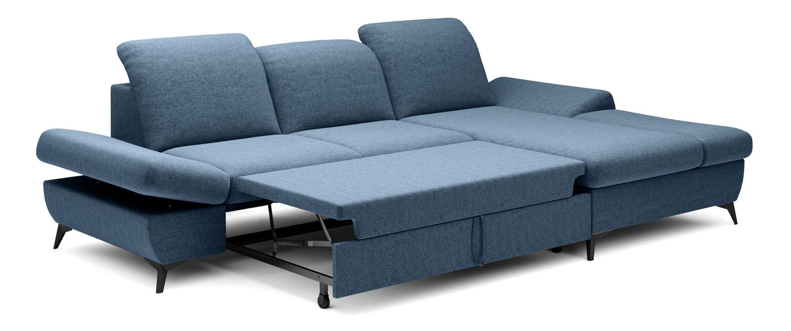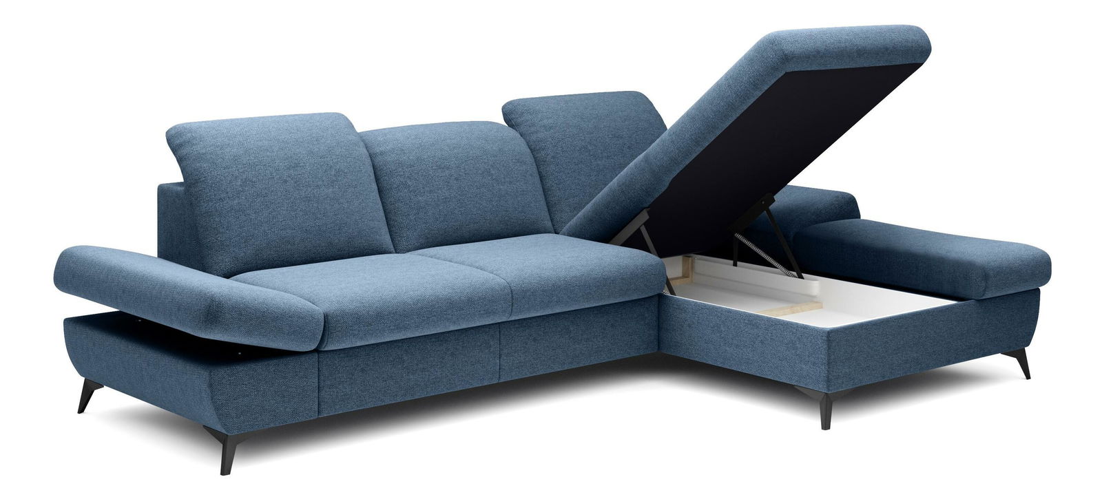 ZobrazitRohová sedačka je vyrobena z kvalitní konstrukce ze dřeva a dřevotřísky, což zaručuje pevnost a trvanlivost. Sedák je z PUR pěny a pružin, které poskytují maximální pohodlí při sezení. Sedačka je rozkládací a nabízí plochu na spaní o rozměrech 128 x 245 cm, ideální pro hosty nebo pro příležitostné přespání. Výška sezení je 42 cm, hloubka sezení 60 cm a výška područky lze nastavit od 42 cm do 57 cm, což umožňuje individuální nastavení podle potřeb uživatele. Sedačka disponuje úložným prostorem, kde můžete uschovat ložní prádlo nebo jiné věci. Hřbet sedačky je potažen stejnou látkou, čímž se dosahuje jednotného a elegantního vzhledu. Nastavitelné opěrky hlavy a područky zvyšují komfort sezení. Nožičky jsou kovové o výšce 10 cm, což dodává sedačce moderní vzhled a stabilitu. Typ rozkládání je vozík, což umožňuje snadné a rychlé rozkládání sedačky.