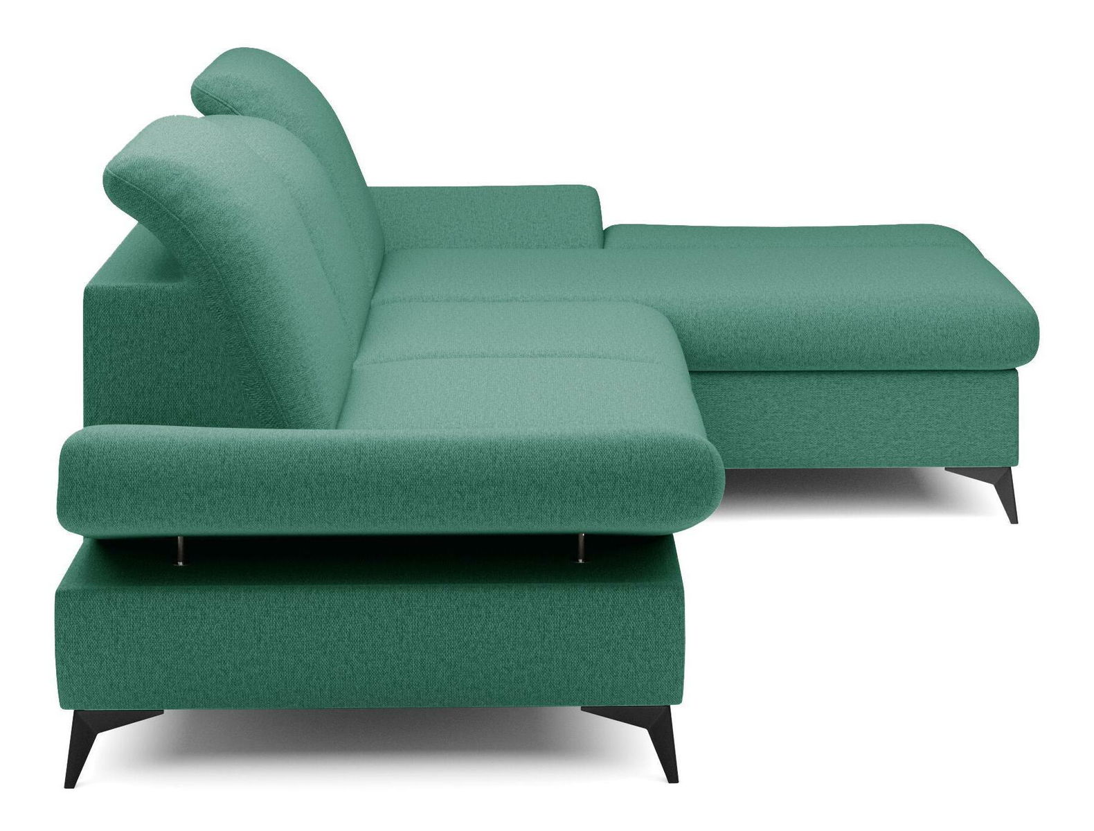 ZobrazitRohová sedačka je vyrobena z kvalitní konstrukce ze dřeva a dřevotřísky, což zaručuje pevnost a trvanlivost. Sedák je z PUR pěny a pružin, které poskytují maximální pohodlí při sezení. Sedačka je rozkládací a nabízí plochu na spaní o rozměrech 128 x 245 cm, ideální pro hosty nebo pro příležitostné přespání. Výška sezení je 42 cm, hloubka sezení 60 cm a výška područky lze nastavit od 42 cm do 57 cm, což umožňuje individuální nastavení podle potřeb uživatele. Sedačka disponuje úložným prostorem, kde můžete uschovat ložní prádlo nebo jiné věci. Hřbet sedačky je potažen stejnou látkou, čímž se dosahuje jednotného a elegantního vzhledu. Nastavitelné opěrky hlavy a područky zvyšují komfort sezení. Nožičky jsou kovové o výšce 10 cm, což dodává sedačce moderní vzhled a stabilitu. Typ rozkládání je vozík, což umožňuje snadné a rychlé rozkládání sedačky.