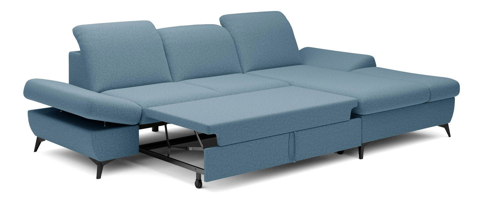 ZobrazitRohová sedačka je vyrobena z kvalitní konstrukce ze dřeva a dřevotřísky, což zaručuje pevnost a trvanlivost. Sedák je z PUR pěny a pružin, které poskytují maximální pohodlí při sezení. Sedačka je rozkládací a nabízí plochu na spaní o rozměrech 128 x 245 cm, ideální pro hosty nebo pro příležitostné přespání. Výška sezení je 42 cm, hloubka sezení 60 cm a výška područky lze nastavit od 42 cm do 57 cm, což umožňuje individuální nastavení podle potřeb uživatele. Sedačka disponuje úložným prostorem, kde můžete uschovat ložní prádlo nebo jiné věci. Hřbet sedačky je potažen stejnou látkou, čímž se dosahuje jednotného a elegantního vzhledu. Nastavitelné opěrky hlavy a područky zvyšují komfort sezení. Nožičky jsou kovové o výšce 10 cm, což dodává sedačce moderní vzhled a stabilitu. Typ rozkládání je vozík, což umožňuje snadné a rychlé rozkládání sedačky.