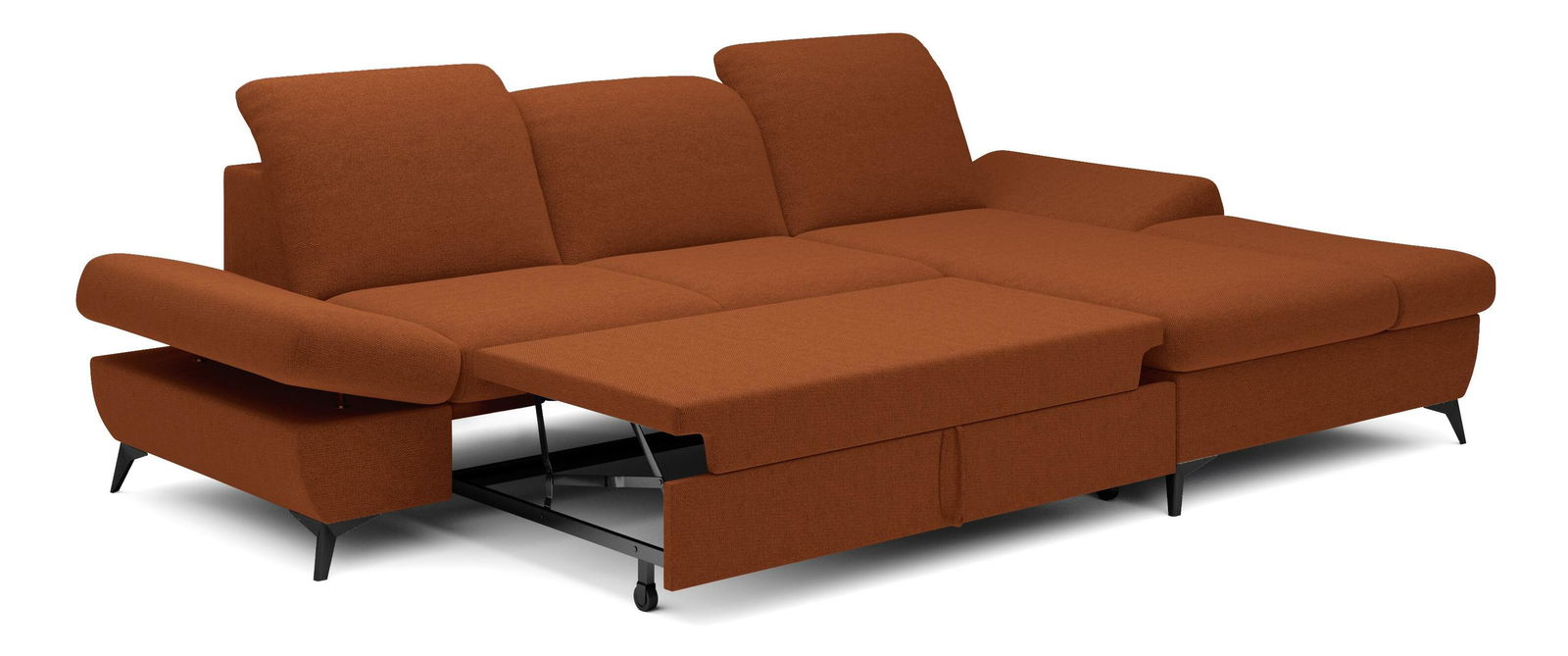 ZobrazitRohová sedačka je vyrobena z kvalitní konstrukce ze dřeva a dřevotřísky, což zaručuje pevnost a trvanlivost. Sedák je z PUR pěny a pružin, které poskytují maximální pohodlí při sezení. Sedačka je rozkládací a nabízí plochu na spaní o rozměrech 128 x 245 cm, ideální pro hosty nebo pro příležitostné přespání. Výška sezení je 42 cm, hloubka sezení 60 cm a výška područky lze nastavit od 42 cm do 57 cm, což umožňuje individuální nastavení podle potřeb uživatele. Sedačka disponuje úložným prostorem, kde můžete uschovat ložní prádlo nebo jiné věci. Hřbet sedačky je potažen stejnou látkou, čímž se dosahuje jednotného a elegantního vzhledu. Nastavitelné opěrky hlavy a područky zvyšují komfort sezení. Nožičky jsou kovové o výšce 10 cm, což dodává sedačce moderní vzhled a stabilitu. Typ rozkládání je vozík, což umožňuje snadné a rychlé rozkládání sedačky.