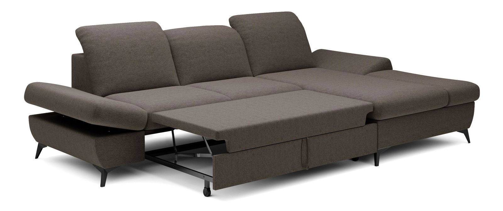 ZobrazitRohová sedačka je vyrobena z kvalitní konstrukce ze dřeva a dřevotřísky, což zaručuje pevnost a trvanlivost. Sedák je z PUR pěny a pružin, které poskytují maximální pohodlí při sezení. Sedačka je rozkládací a nabízí plochu na spaní o rozměrech 128 x 245 cm, ideální pro hosty nebo pro příležitostné přespání. Výška sezení je 42 cm, hloubka sezení 60 cm a výška područky lze nastavit od 42 cm do 57 cm, což umožňuje individuální nastavení podle potřeb uživatele. Sedačka disponuje úložným prostorem, kde můžete uschovat ložní prádlo nebo jiné věci. Hřbet sedačky je potažen stejnou látkou, čímž se dosahuje jednotného a elegantního vzhledu. Nastavitelné opěrky hlavy a područky zvyšují komfort sezení. Nožičky jsou kovové o výšce 10 cm, což dodává sedačce moderní vzhled a stabilitu. Typ rozkládání je vozík, což umožňuje snadné a rychlé rozkládání sedačky.