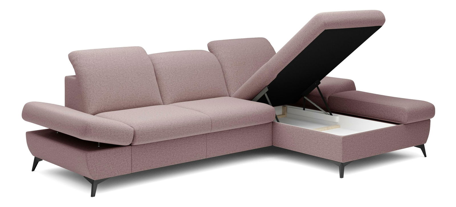 ZobrazitRohová sedačka je vyrobena z kvalitní konstrukce ze dřeva a dřevotřísky, což zaručuje pevnost a trvanlivost. Sedák je z PUR pěny a pružin, které poskytují maximální pohodlí při sezení. Sedačka je rozkládací a nabízí plochu na spaní o rozměrech 128 x 245 cm, ideální pro hosty nebo pro příležitostné přespání. Výška sezení je 42 cm, hloubka sezení 60 cm a výška područky lze nastavit od 42 cm do 57 cm, což umožňuje individuální nastavení podle potřeb uživatele. Sedačka disponuje úložným prostorem, kde můžete uschovat ložní prádlo nebo jiné věci. Hřbet sedačky je potažen stejnou látkou, čímž se dosahuje jednotného a elegantního vzhledu. Nastavitelné opěrky hlavy a područky zvyšují komfort sezení. Nožičky jsou kovové o výšce 10 cm, což dodává sedačce moderní vzhled a stabilitu. Typ rozkládání je vozík, což umožňuje snadné a rychlé rozkládání sedačky.