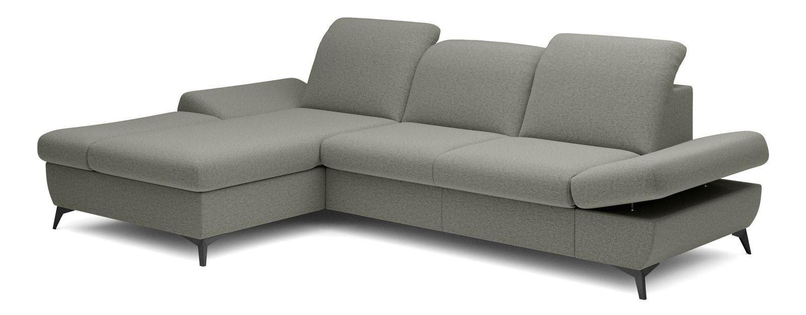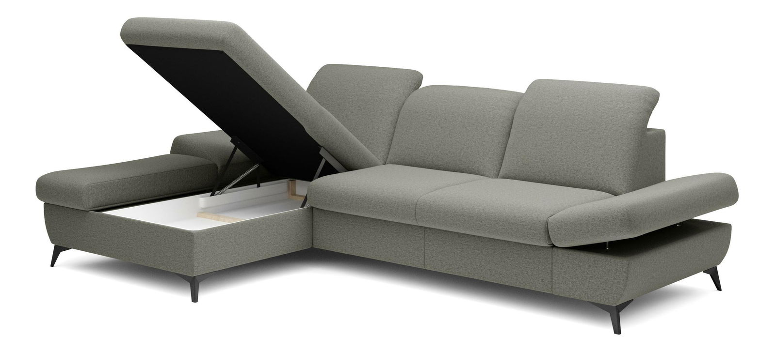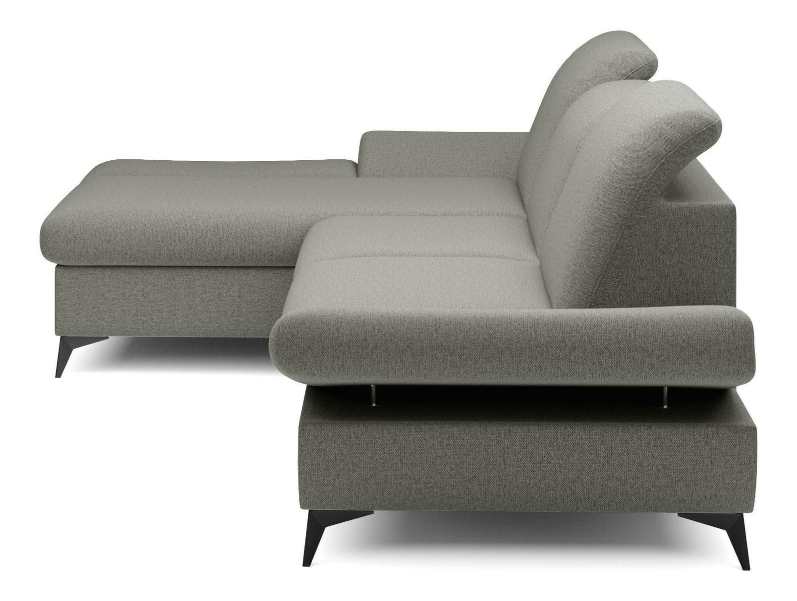 ZobrazitRohová sedačka je vyrobena z kvalitní konstrukce ze dřeva a dřevotřísky, což zaručuje pevnost a trvanlivost. Sedák je z PUR pěny a pružin, které poskytují maximální pohodlí při sezení. Sedačka je rozkládací a nabízí plochu na spaní o rozměrech 128 x 245 cm, ideální pro hosty nebo pro příležitostné přespání. Výška sezení je 42 cm, hloubka sezení 60 cm a výška područky lze nastavit od 42 cm do 57 cm, což umožňuje individuální nastavení podle potřeb uživatele. Sedačka disponuje úložným prostorem, kde můžete uschovat ložní prádlo nebo jiné věci. Hřbet sedačky je potažen stejnou látkou, čímž se dosahuje jednotného a elegantního vzhledu. Nastavitelné opěrky hlavy a područky zvyšují komfort sezení. Nožičky jsou kovové o výšce 10 cm, což dodává sedačce moderní vzhled a stabilitu. Typ rozkládání je vozík, což umožňuje snadné a rychlé rozkládání sedačky.